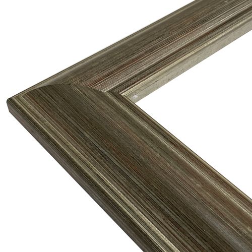 木製、オーダー製作専用フレーム。銀箔を磨き出して、下地を露出させました。赤や黒が見え隠れするシルバーフレームです。
