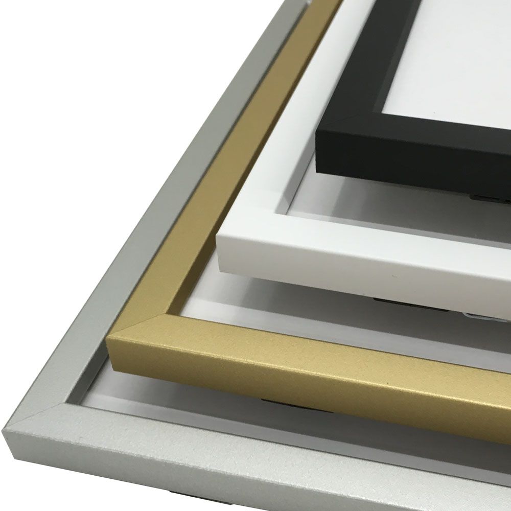 シンプルモダンに仕上げる、角ばった形状のアルミ額。