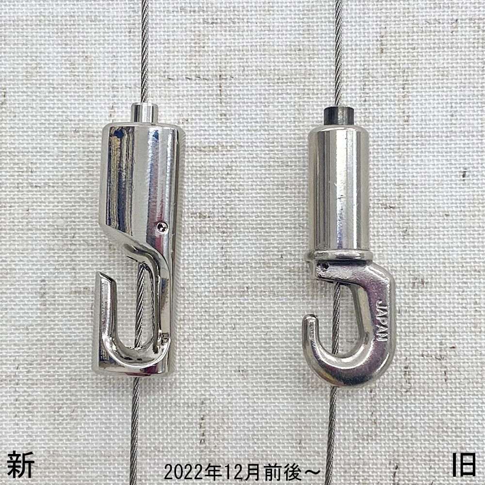 ちなみにワイヤーを2本使った2点吊りなら、10kgまで対応可能です。なお木部でご使用の場合は、更なる耐荷重が期待できます。