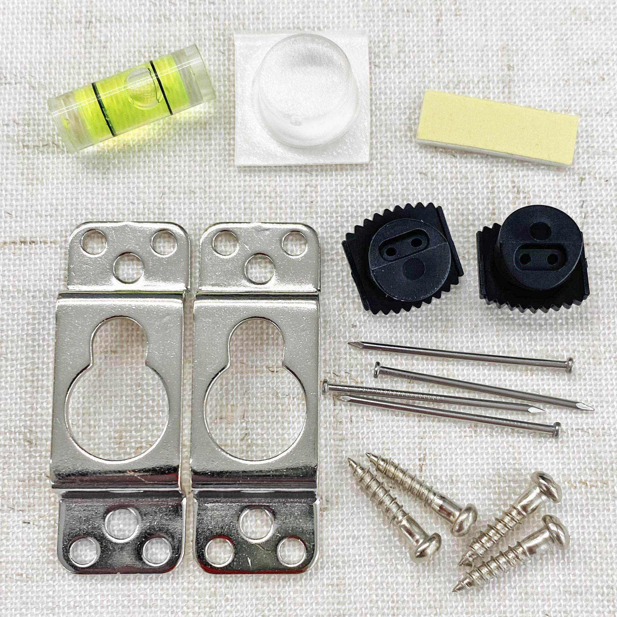 額縁を水平に飾る金具類は、取り付けの煩わしさが問題ですが、