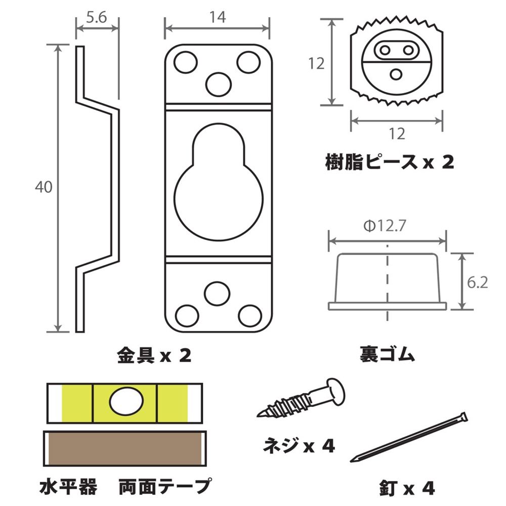 額縁を水平に飾る金具類は、取り付けの煩わしさが問題ですが、