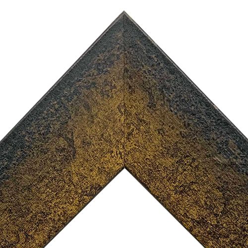 木製、オーダー製作専用フレーム。凹凸のある、重厚な質感が感じられる額縁です。黒地にいぶしがかったゴールドを乗せました。