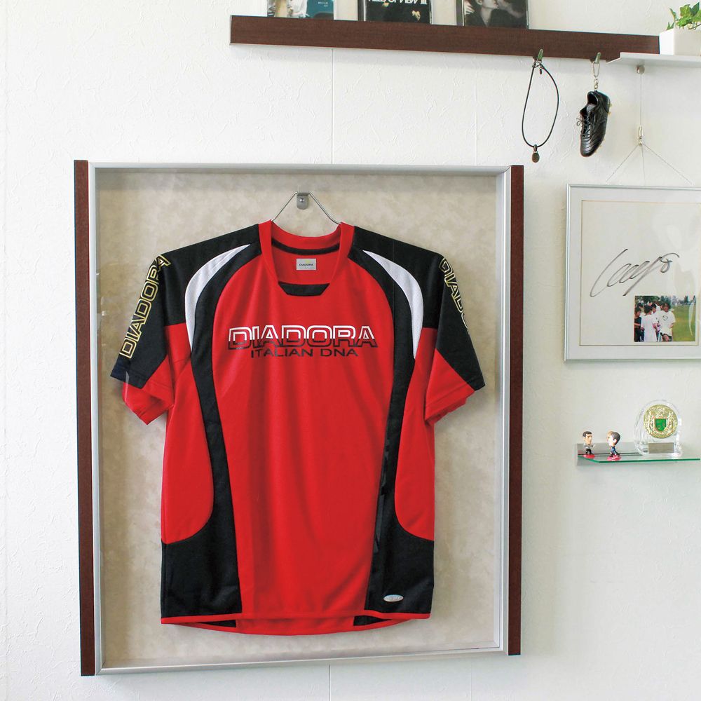 ユニフォームのサイズ表記がMでも、額縁もMサイズとは限りません。競技によってもサイズが大きく異なります。 実際にお手元のユニフォームを広げて、額縁サイズと比べてください。袖を折り返すなど、額縁の中で微調整も可能です。