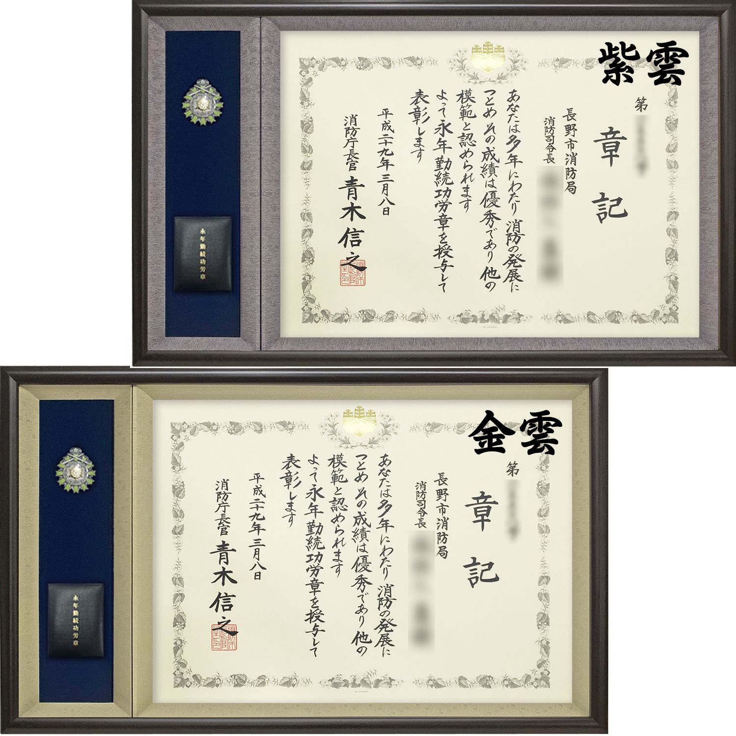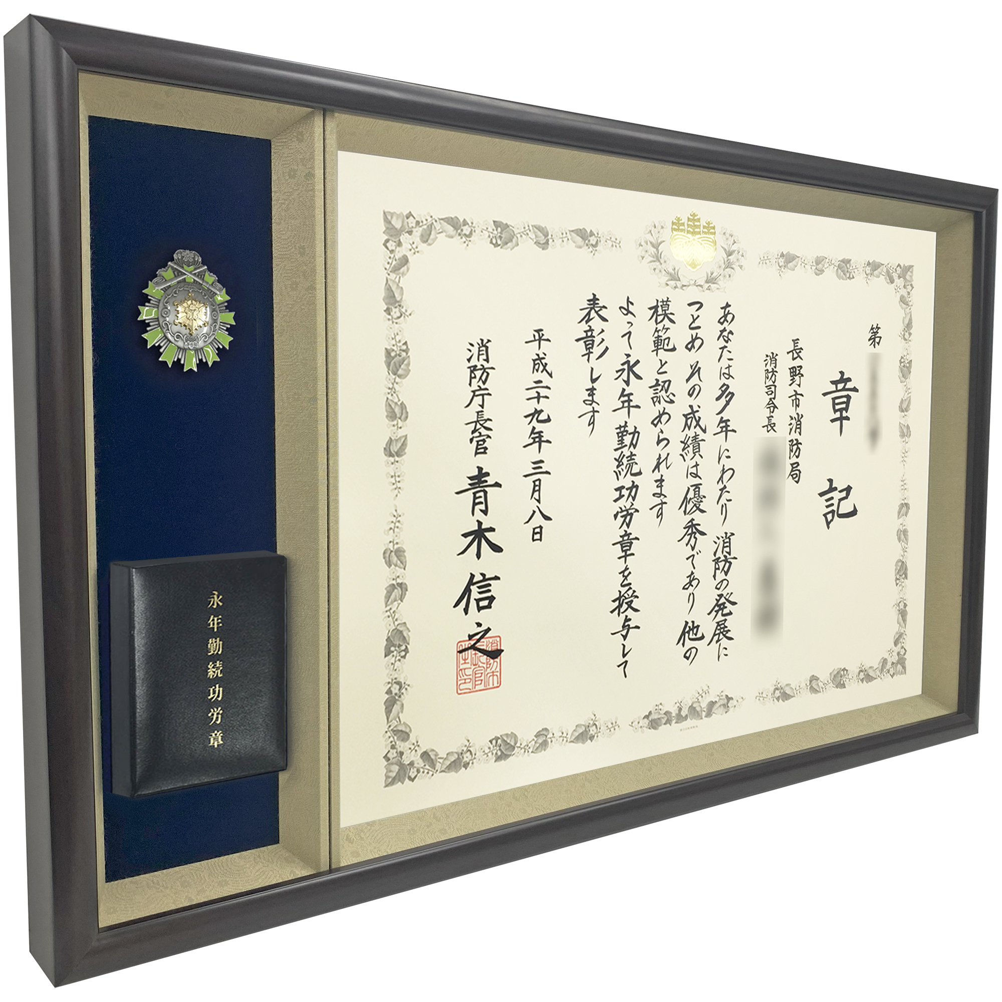 シックでモダン、コンパクトな消防庁表彰の専用額です