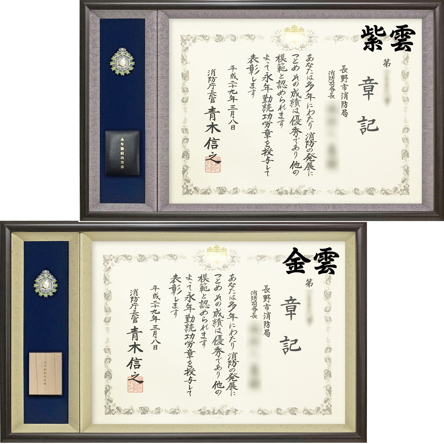 シックでモダン、コンパクトな消防庁表彰の専用額です