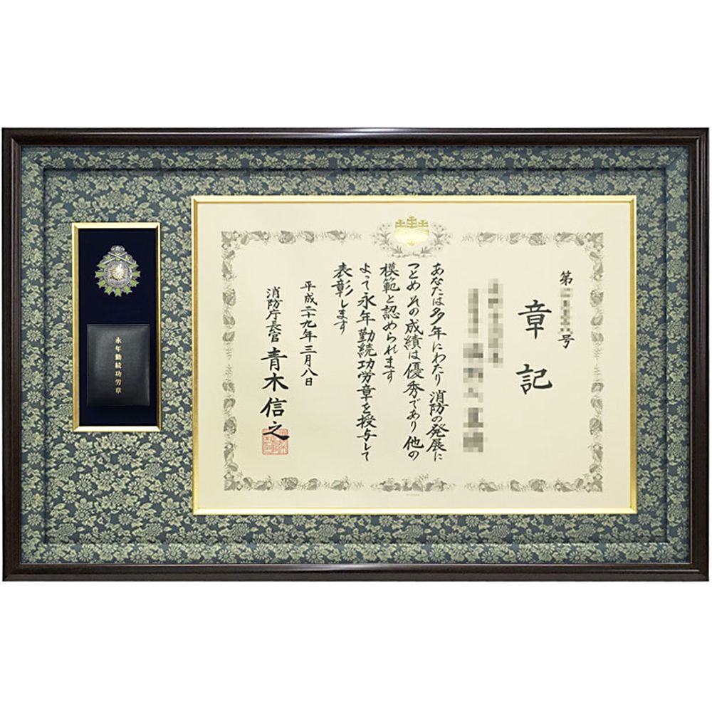 ケースも飾れる機能性が人気、消防庁長官表彰専用額です
