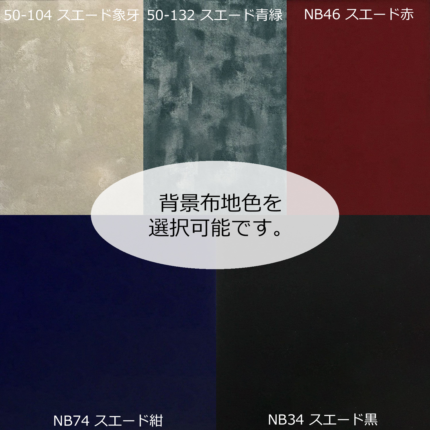 フレーム色を4色から、背景色としてスエード調の布から5色からお選びください。
