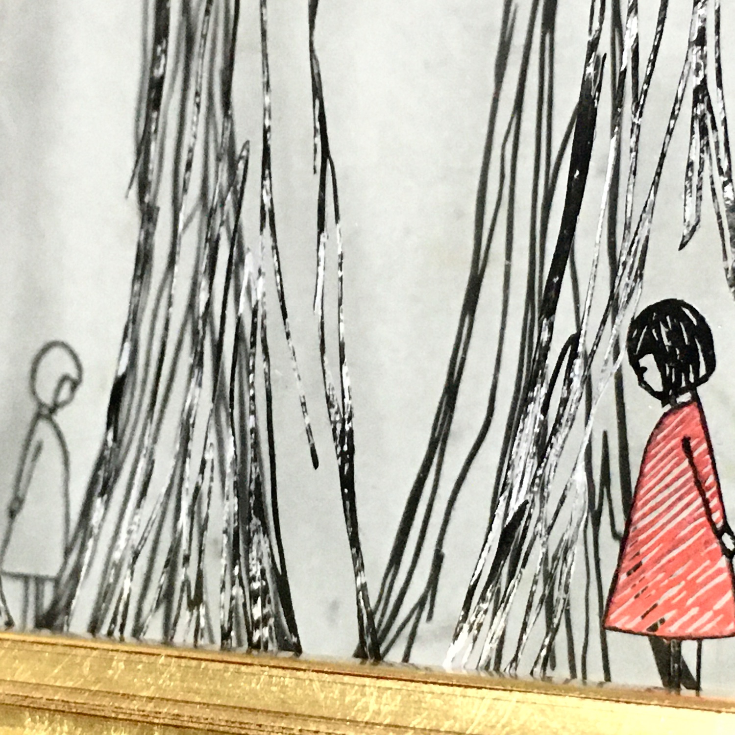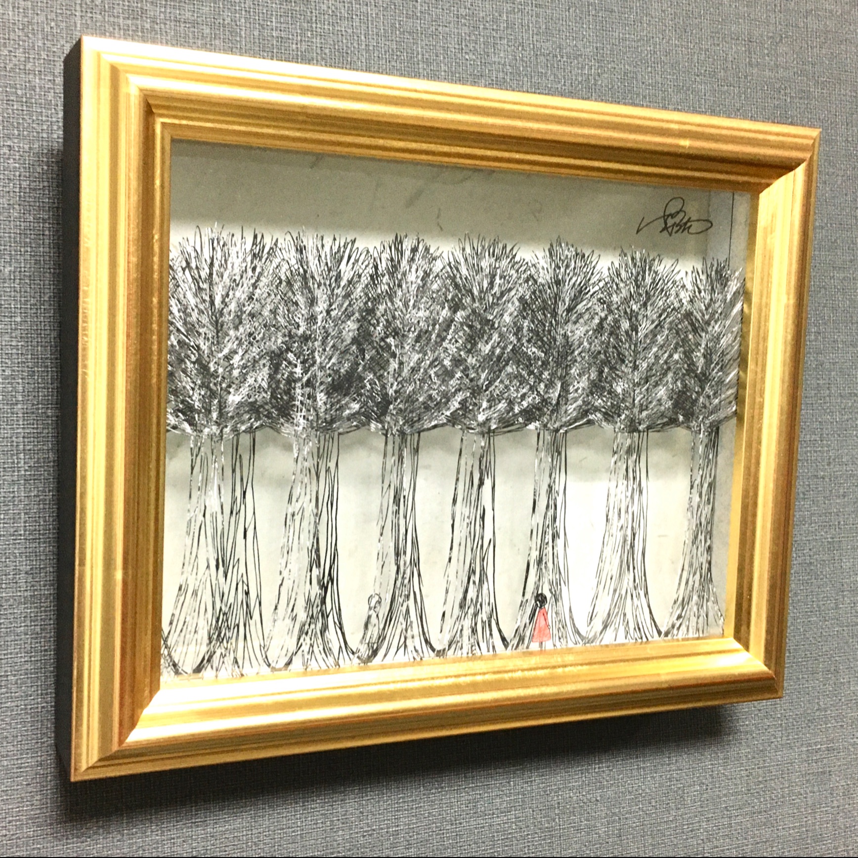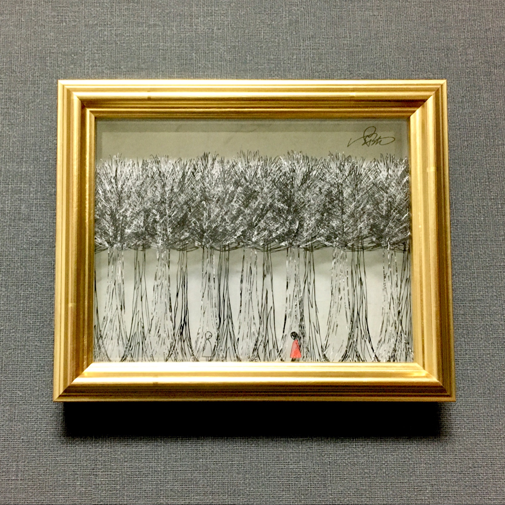 絵本のワンシーンを額に閉じ込めたような切り絵に見惚れてしまいます。少女たちの並ぶ場所や木々の重なりの奥行きから世界を感じられ、作品から物語を考えてしまいそうですね🌳