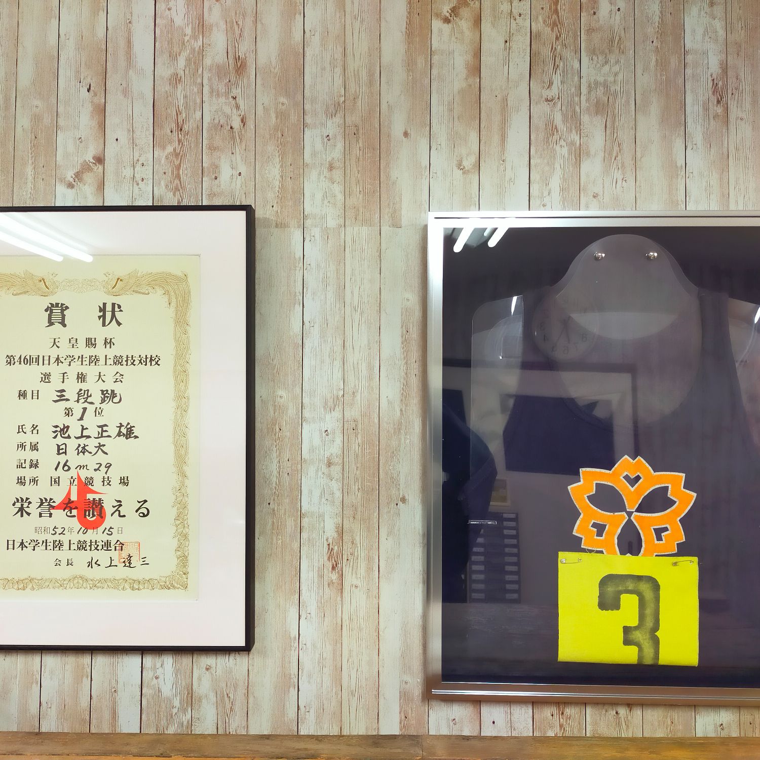 45年間タンスや収納箱に閉まっていた賞状とユニフォームを素敵な額縁に収めることが出来ました。