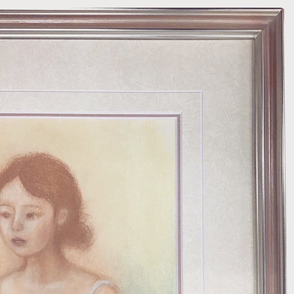 パステル画を額装しました!こちらの作品は9/22〜9/27までギャラリータカハシ松本にて開催されていた「ジュンジ・オグチ パステル画・水彩スケッチ展」で展示されていました! 使用フレームは「弦型 銀ピンク 三々サイズ」、マットは少し模様のある白色マット(20101)と薄桃色マット(10508)のWマットに、V溝加工をしました!