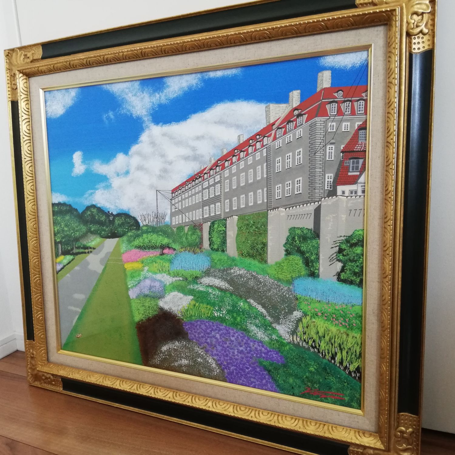 油絵額縁 8904を購入し、「Spring in Copenhagen, At Rosenborg」をセットアップ、部屋に飾りました。デンマークの景色にふさわしい額縁で大変気に入っています。