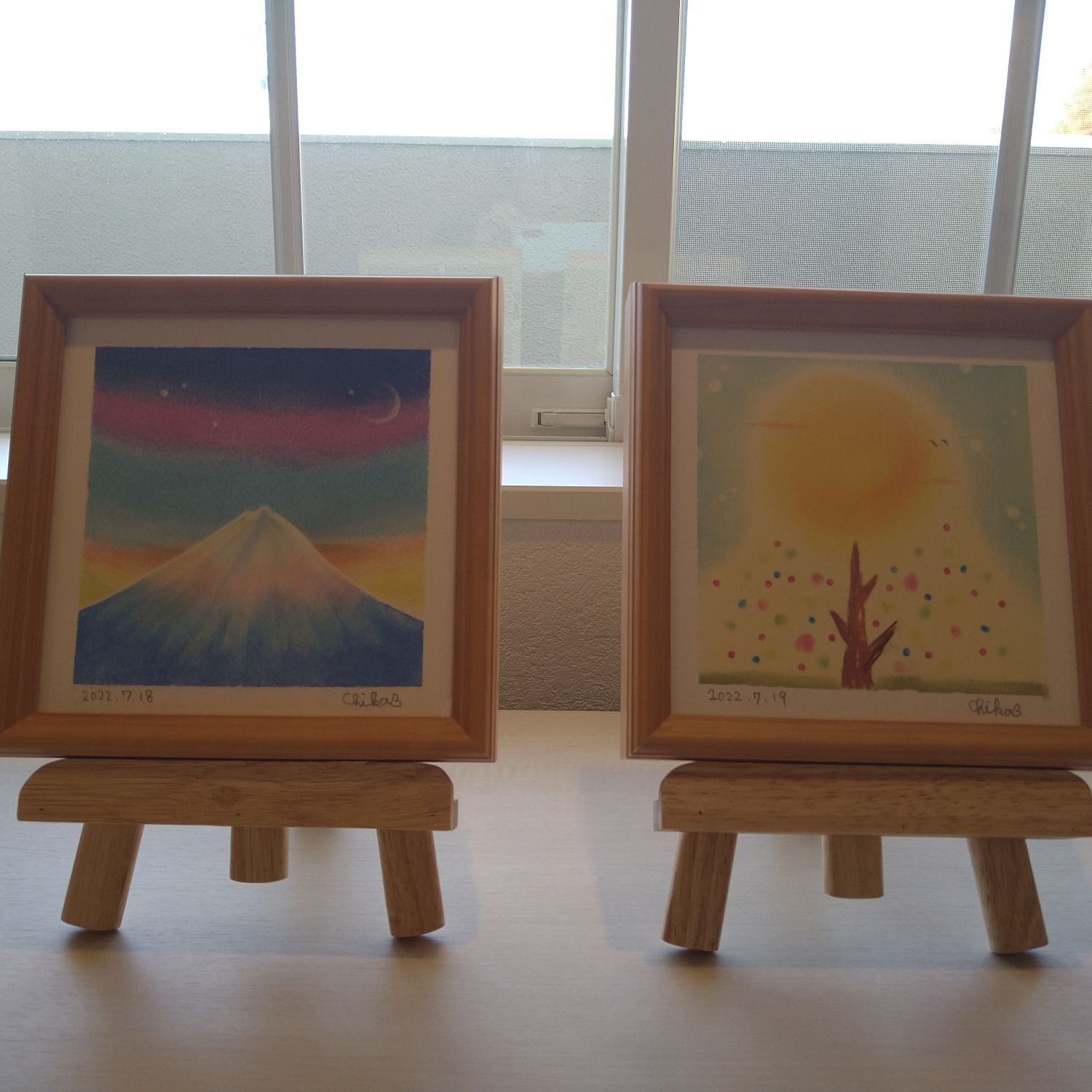 15センチ角のパステルアート グループ展に出す絵を飾りました