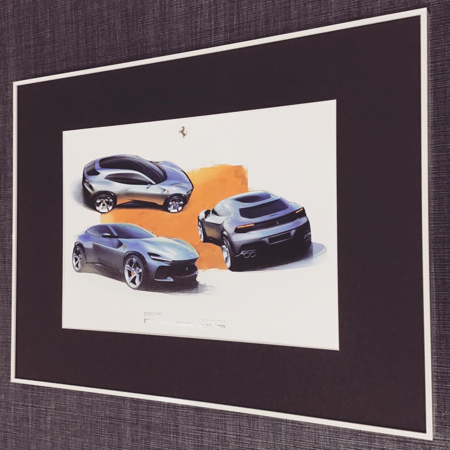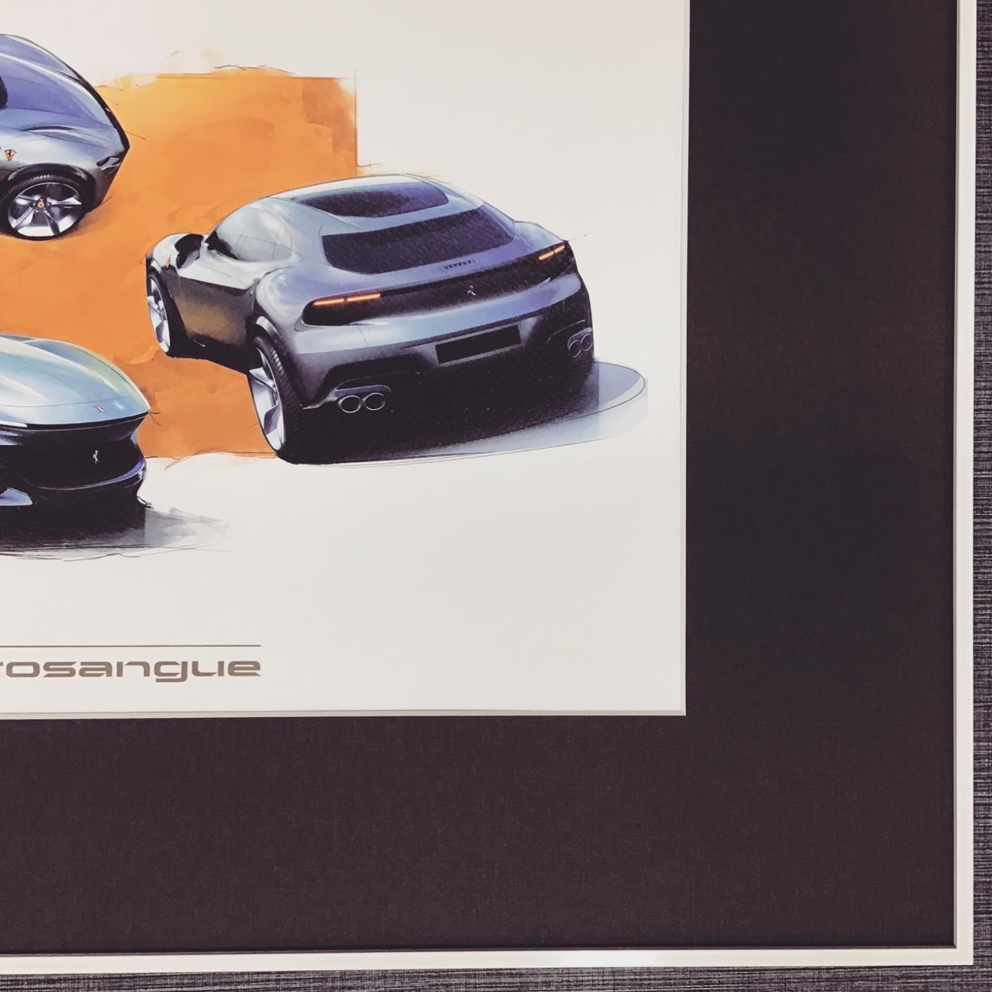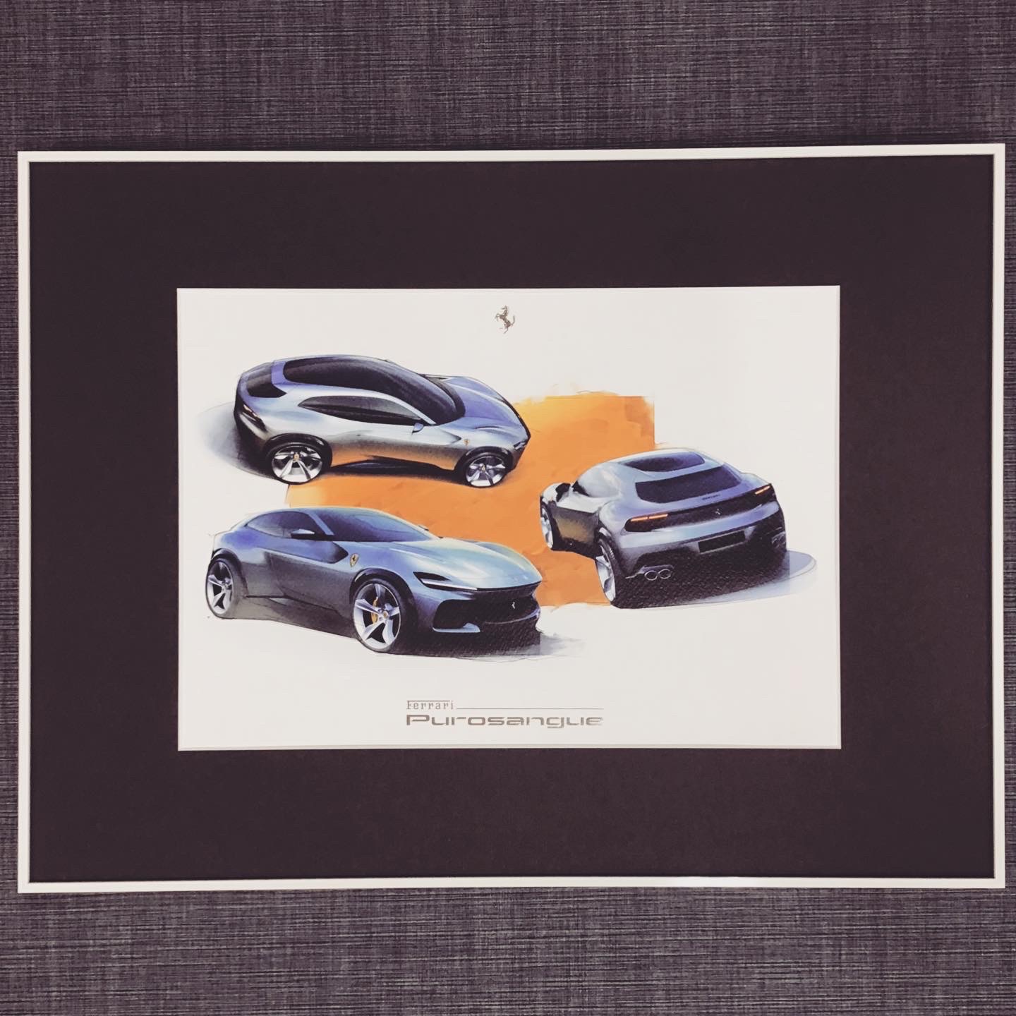 フェラーリ「Purosangue」のリトグラフを額装しました! 使用したフレームは「SH-202N ホワイト 三々」、マットは墨色マット(10520)です!