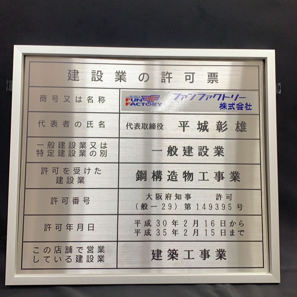 建設業許可証のフレームとして使用しております。特注サイズの取り扱いがあるので大変重宝します。