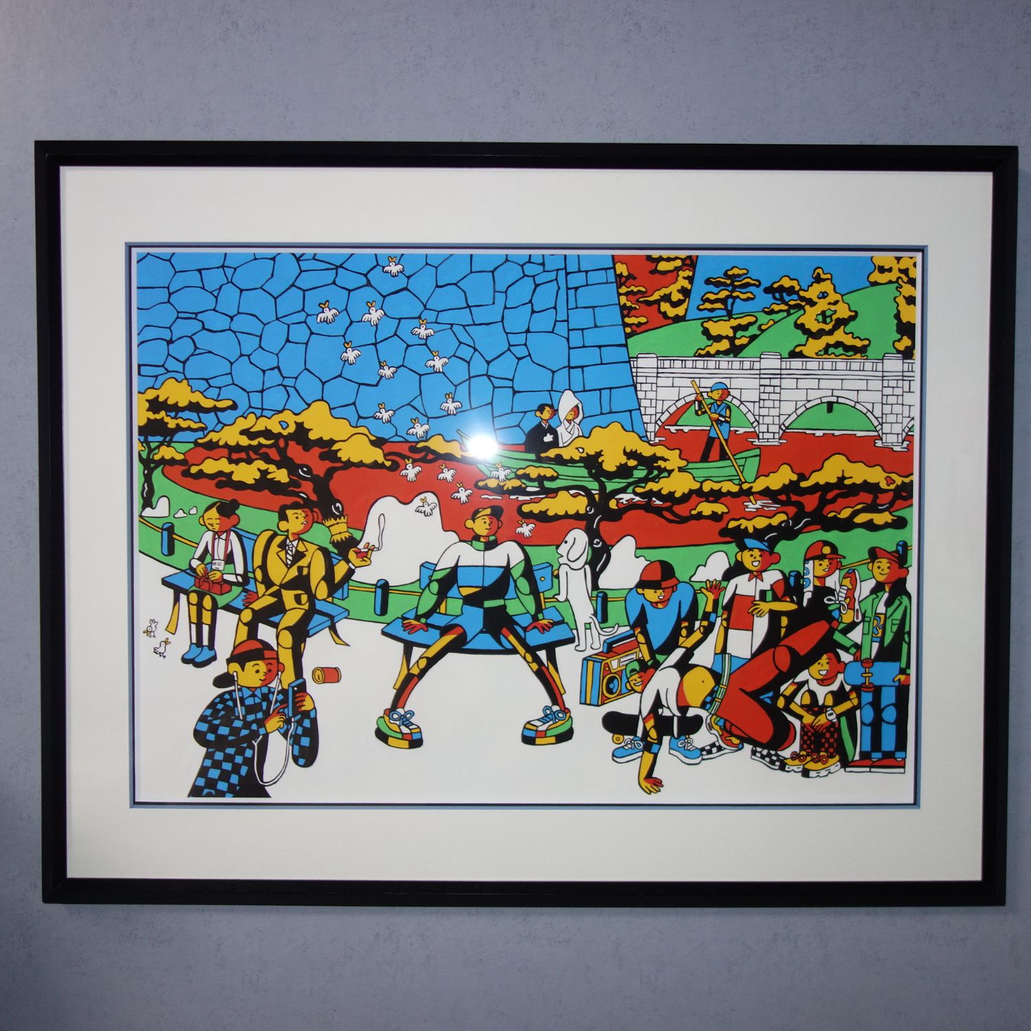 アレサンドロ・ビオレッティ(公園で休憩) 額装マット/392×508/302×427/標準四角窓/カラーコア青10191