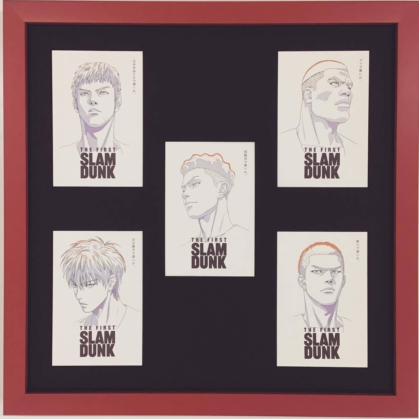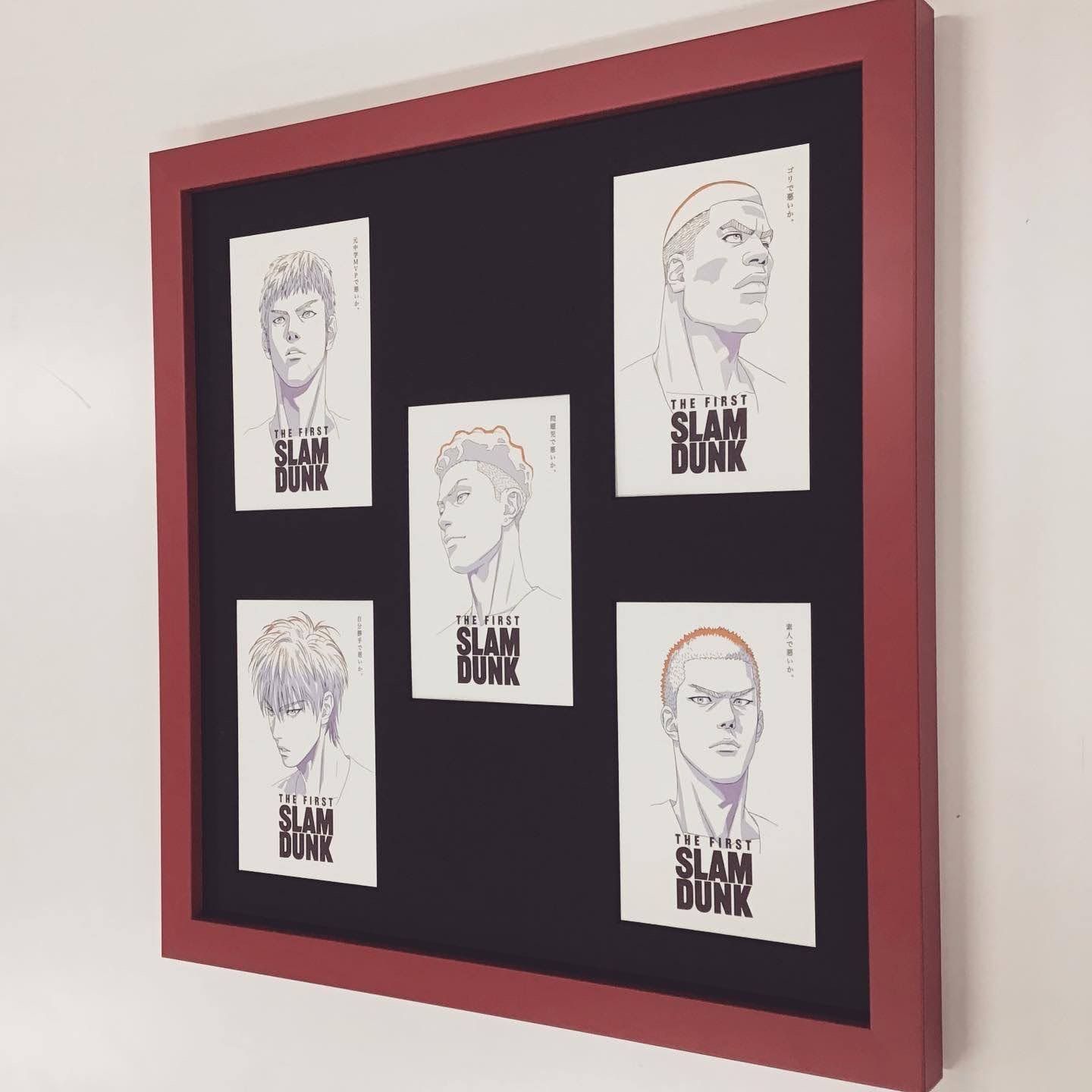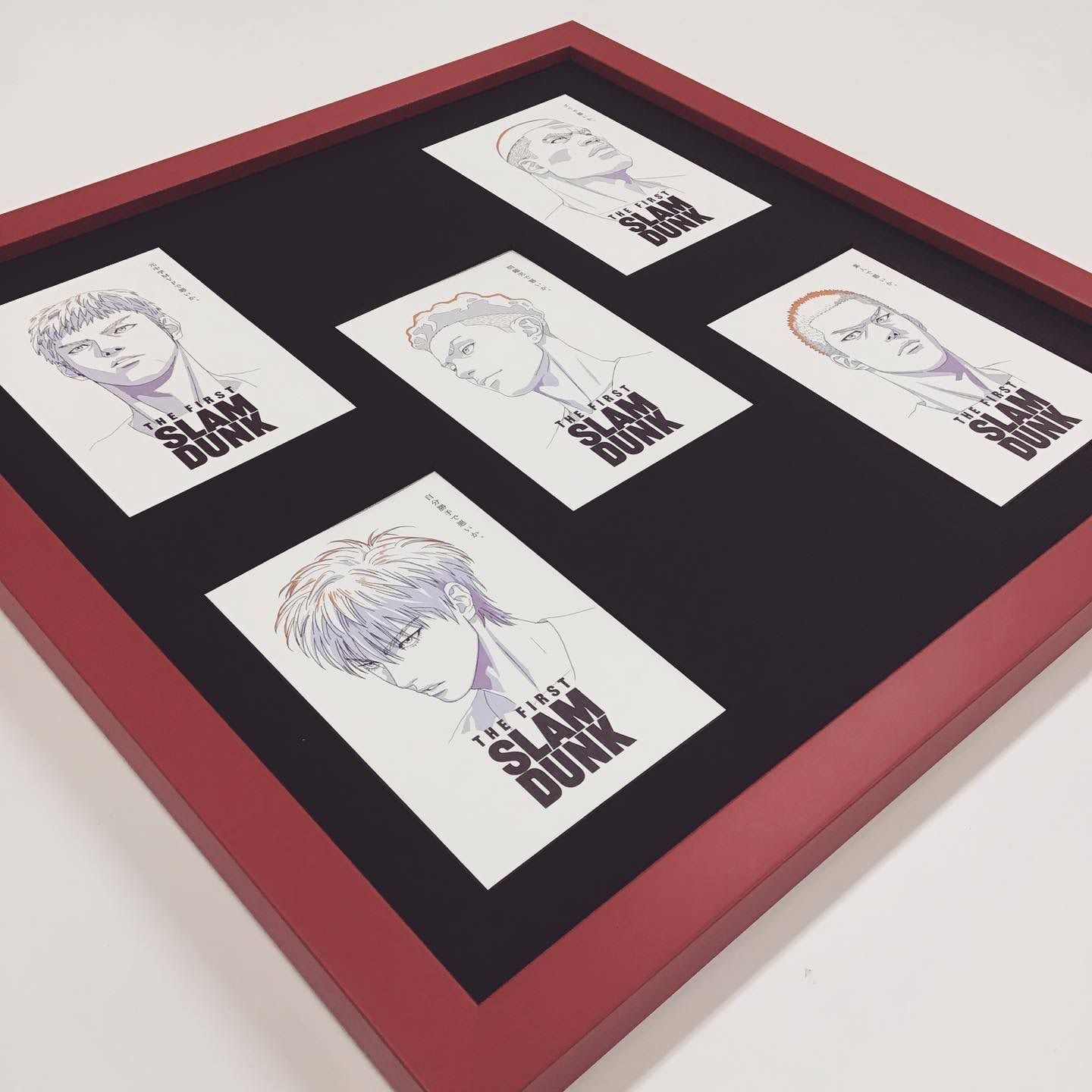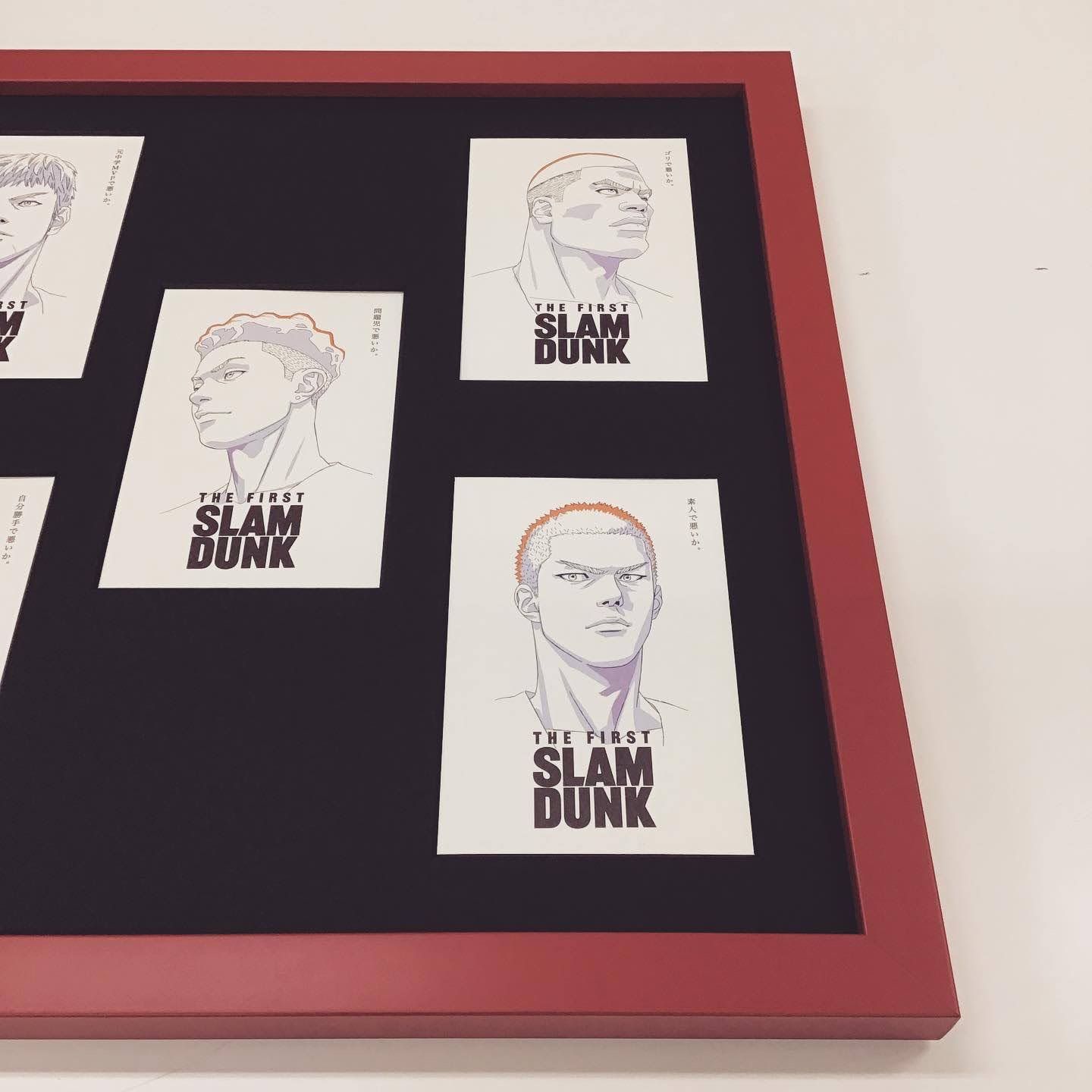 スラムダンクの映画グッズであるポストカードをお持ち込み頂き、額装しました。額、カラーリングのチョイス、レイアウト、全てお客様指定で、センスが光る額装です!額の中にかくれてしまう部分ですが、宛名面の切手部分のガイドが、バスケットコートになっていました。45°角の小さな中性紙コーナー留めを作り、デザインにかぶらないように対角の二か所で固定しました。ポストカード等の張りのある用紙、寸法でしたら、2箇所留めでも十分固定できます。真四角の赤い額(01-4001 赤)に、芯が黒のマット(カラーコア黒10199)を使い左右対称に配置をしています。額装していてとても楽しませていただきました! ▶︎ @gakubuti_net ◀︎ その他の額縁、額装が気になる方はHPを御覧ください! #額縁のタカハシ松本店 #額縁のタカハシ #額映え #額縁屋 #額縁店 #額装 #額縁 #額 #額縁アート #額縁職人 #ポストカード #複数窓 #ブラック #SLAMDUNK #宮城リョータ #リョーちん #桜木花道 #流川楓 #三井寿 #赤木剛憲