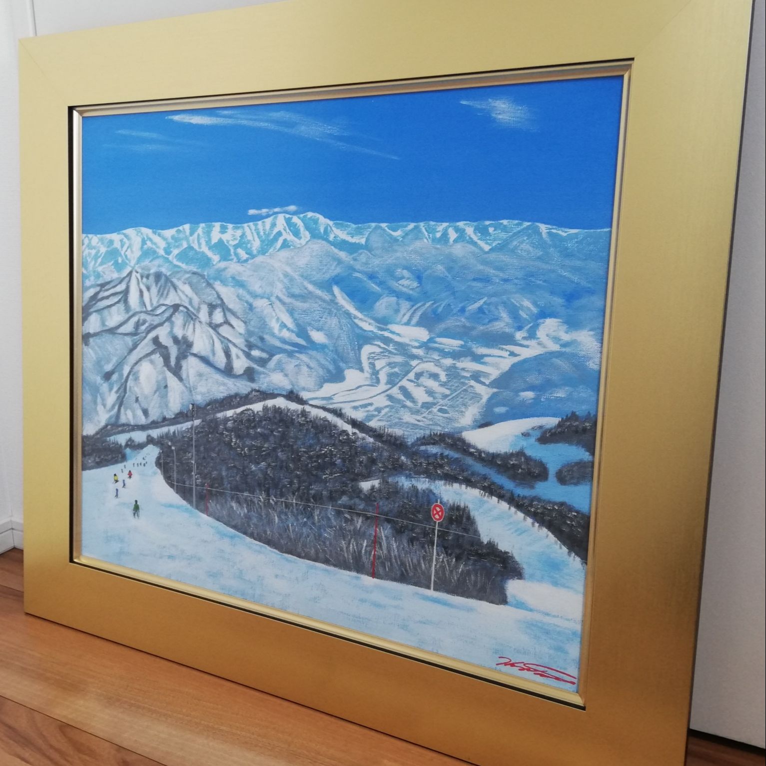 油絵額縁 3463を購入し、「越後湯沢」を飾りました。こちらの額縁は厚みがなく、すっきりしているので、そうしたスペースに絵を飾るのに最適だと思います。