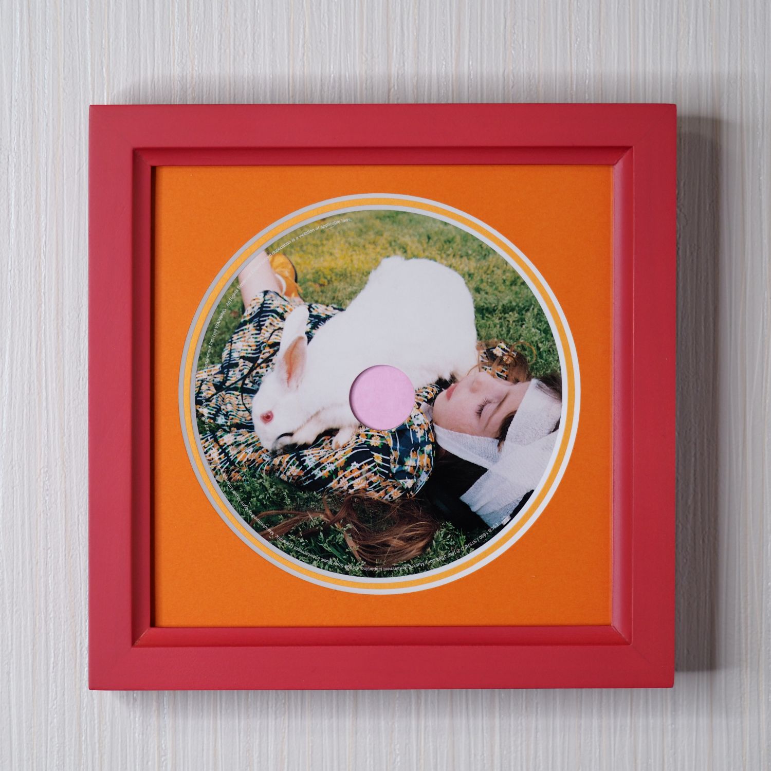 円形のCDジャケットを額装してみました。マットの色はもともとのCDケースの色に寄せてみました。