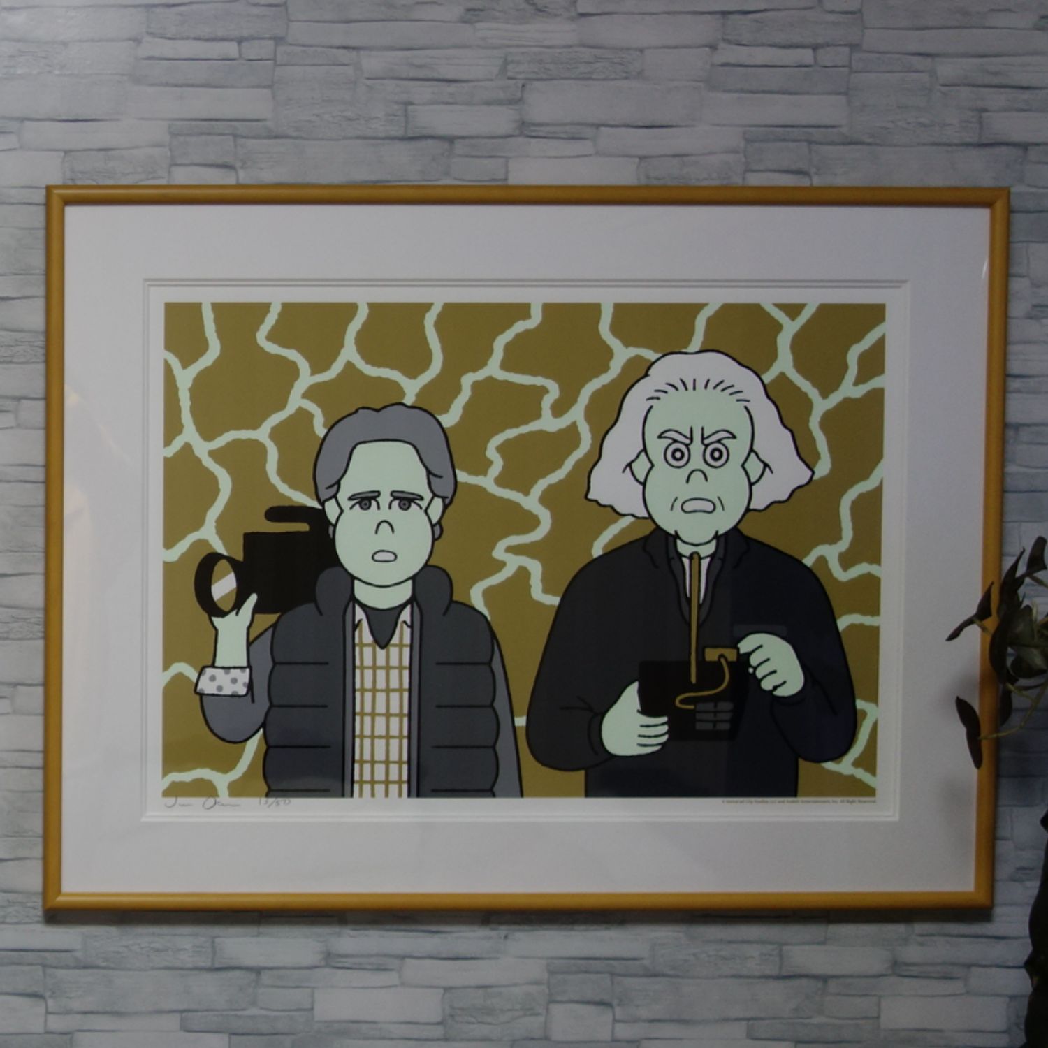 jun oson×バックトゥーザフューチャーのシルクスクリーン😲💕中の作品とフレーム色の雰囲気が合っていますね!表情の愛らしさと、丸みのあるかまぼこ型のフレームで温かみを感じる仕上がりになっています。