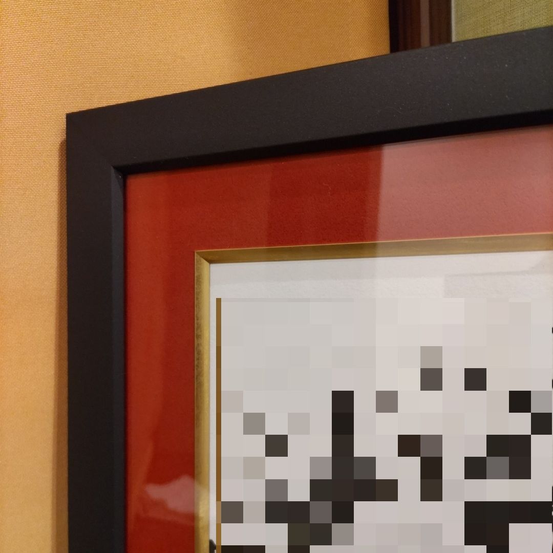 赤色のマットと金の面金の組み合わせが、安定感のある額装に仕上がっていています!赤と黒のテーマカラーを上手く表現されていてとても素敵です😊