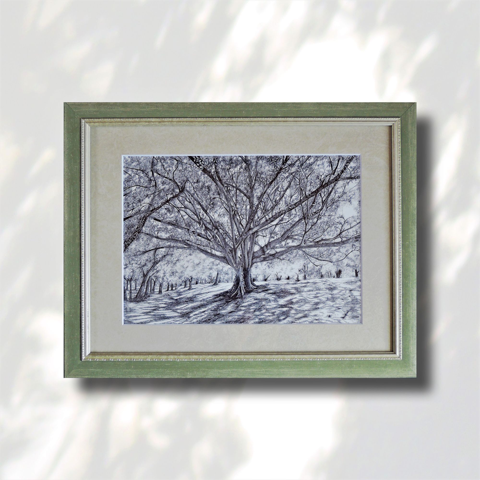 一般額 MH-E38Jのグリーンにもみ紙白のマットを合わせて、樹のペン画を額装しました。メルボルン滞在中に自分で撮影した大樹を描いた作品ですが、光あふれる風景に明るく優しい風合いの額を合わせたいと思い、こちらのアイテムを選択しました。期待通りの仕上がりで大変嬉しいです。ありがとうございました。
