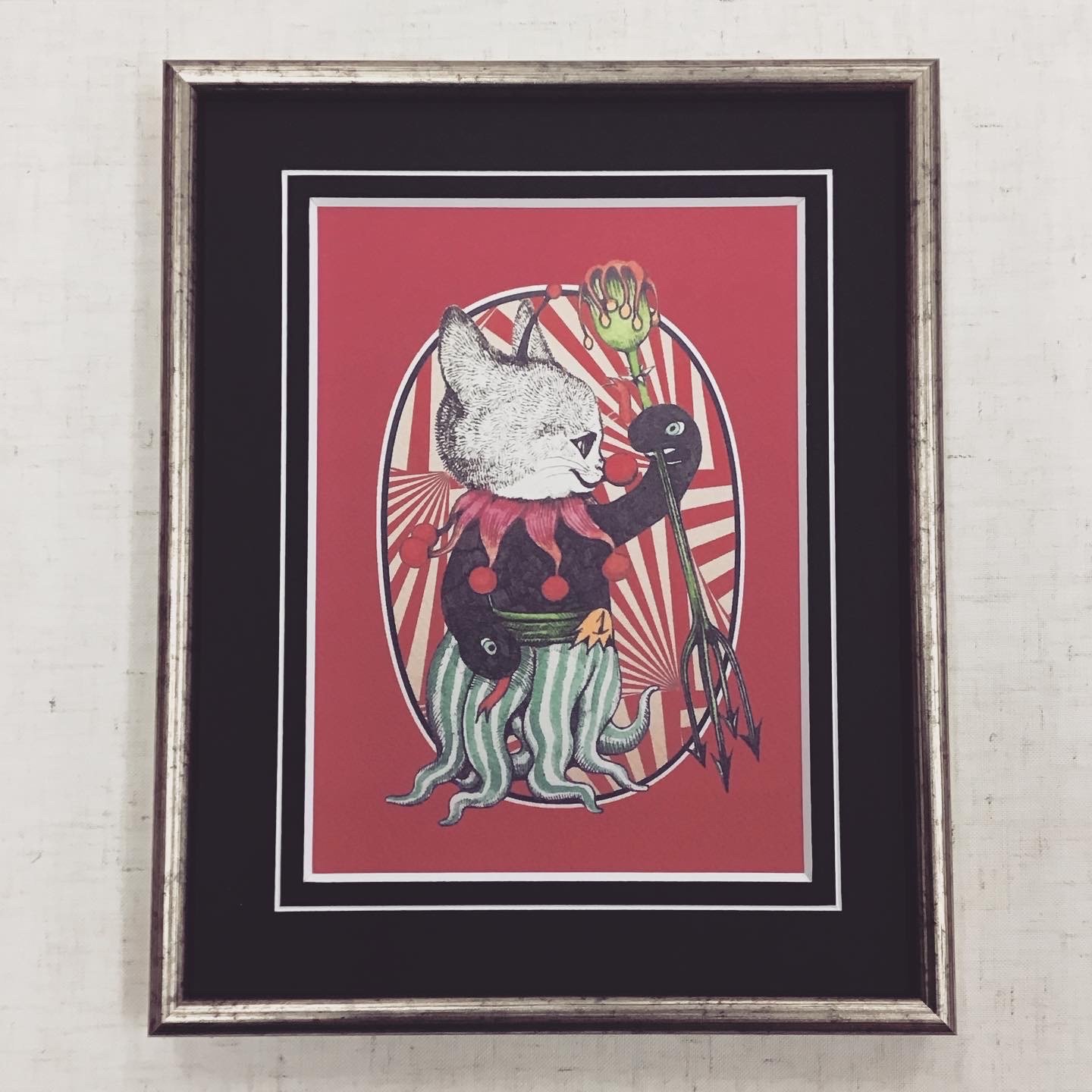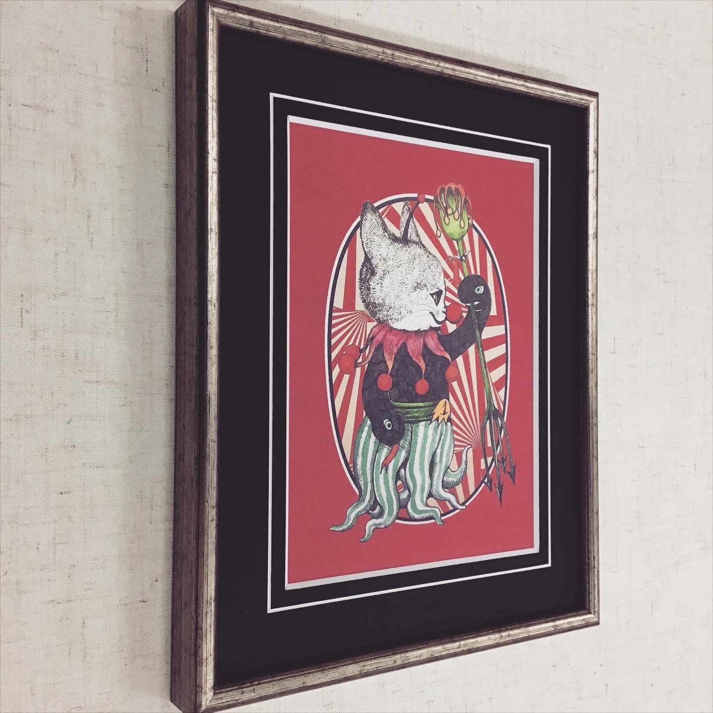 ヒグチユウコ「ギュスターヴくん」の複製画を額装しました! 顔はネコなのに、手はヘビ、足はタコの不思議な生き物「ギュスターヴくん」...不思議な魅力を持つ猫ちゃん(?)です。 使用したフレームは「MH-16K BS インチサイズ」、マットは黒色マット(20010)にぐるっと一周V溝加工しました!