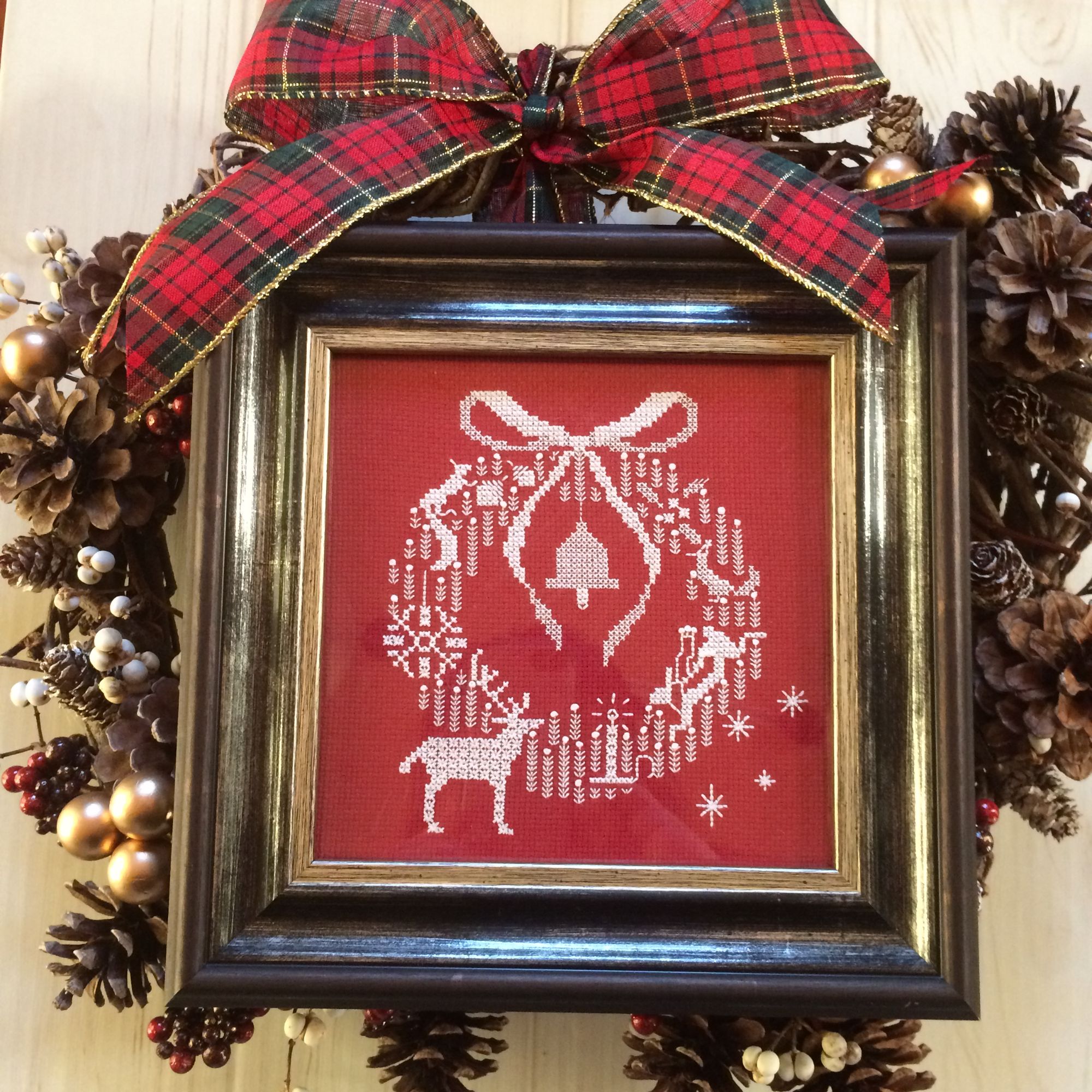 重厚感のあるフレームと赤色のクロスステッチがとってもよく似合っています!リースに一緒になっているのもすごく素敵です~!🎅どこに飾っても可愛らしくクリスマスを彩ってくれますね✨🎄