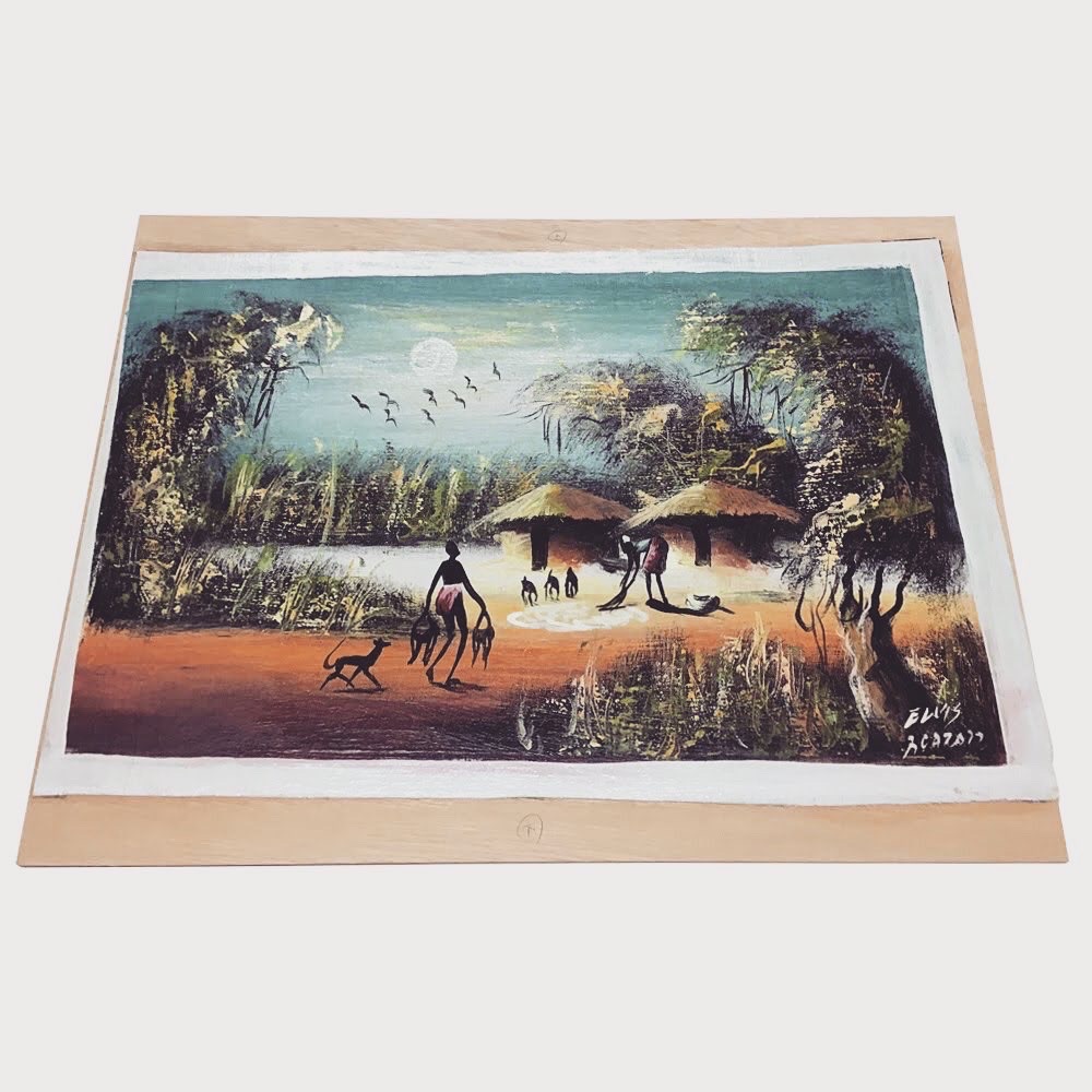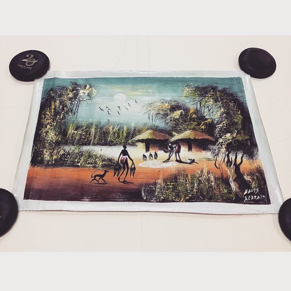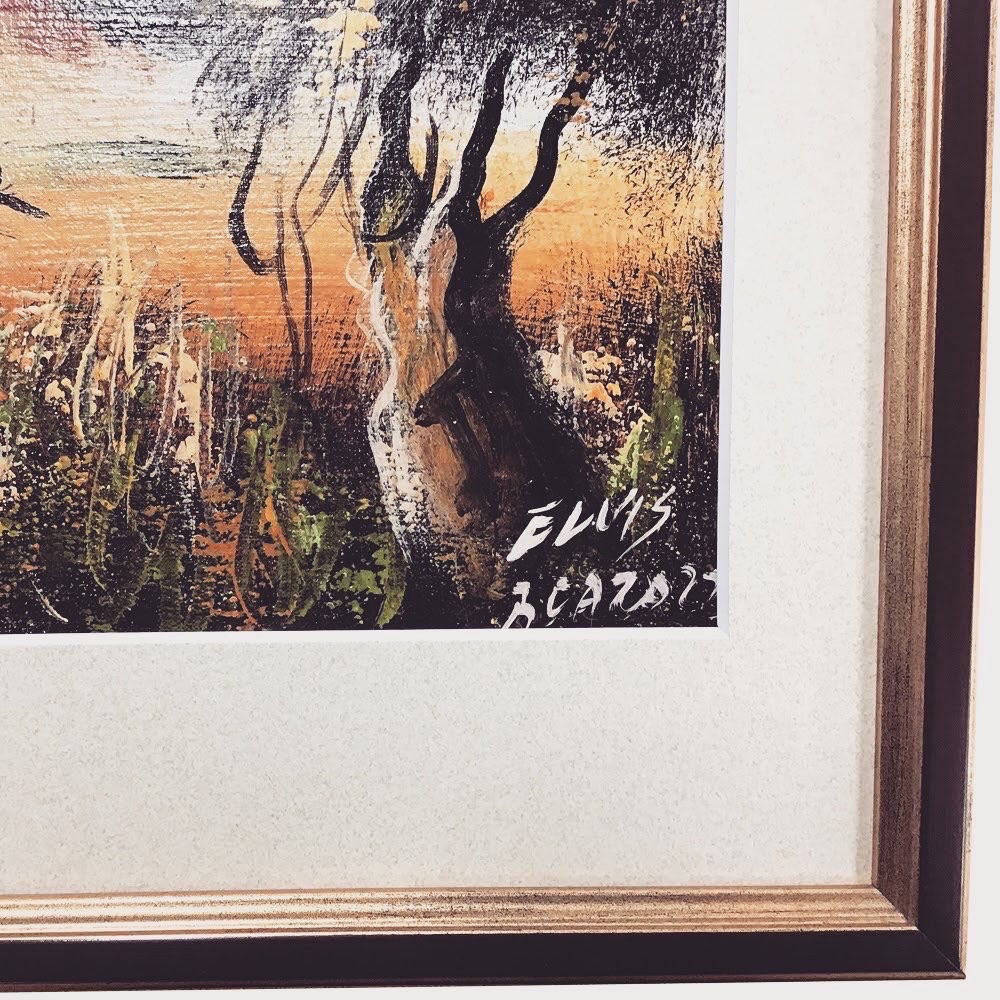 油彩画を額装しました! こちらの油彩画は海外のお土産品とのことで、画布の状態でお持ち込みいただきました。通常ですと画布の状態のものは木枠に張り込んで、油彩額に額装しますが、今回は画布をベニヤに貼ってデッサン額に額装しました。 こちらの額装方法はなるべく安く&細く薄めの額に額装したい時にオススメです!しかし、ベニヤに貼る時にボンドを使用するので注意が必要です。 使用したフレームは「サマルカンド 金茶 大衣サイズ」、マットはコルク色(19002)です。