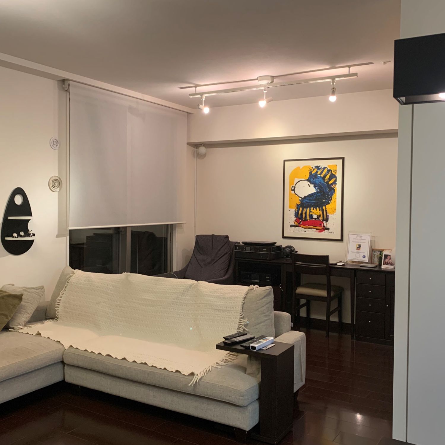 「ピーナッツ」唯一のファインアーティストの「トム・エバハート」氏のスヌーピーですね😳自由なタッチが色鮮やかで、確かに色の組み合わせなどに迷ってしまいますが、すっきりとした纏まりのある額装でとても素敵に仕上がっています✨
