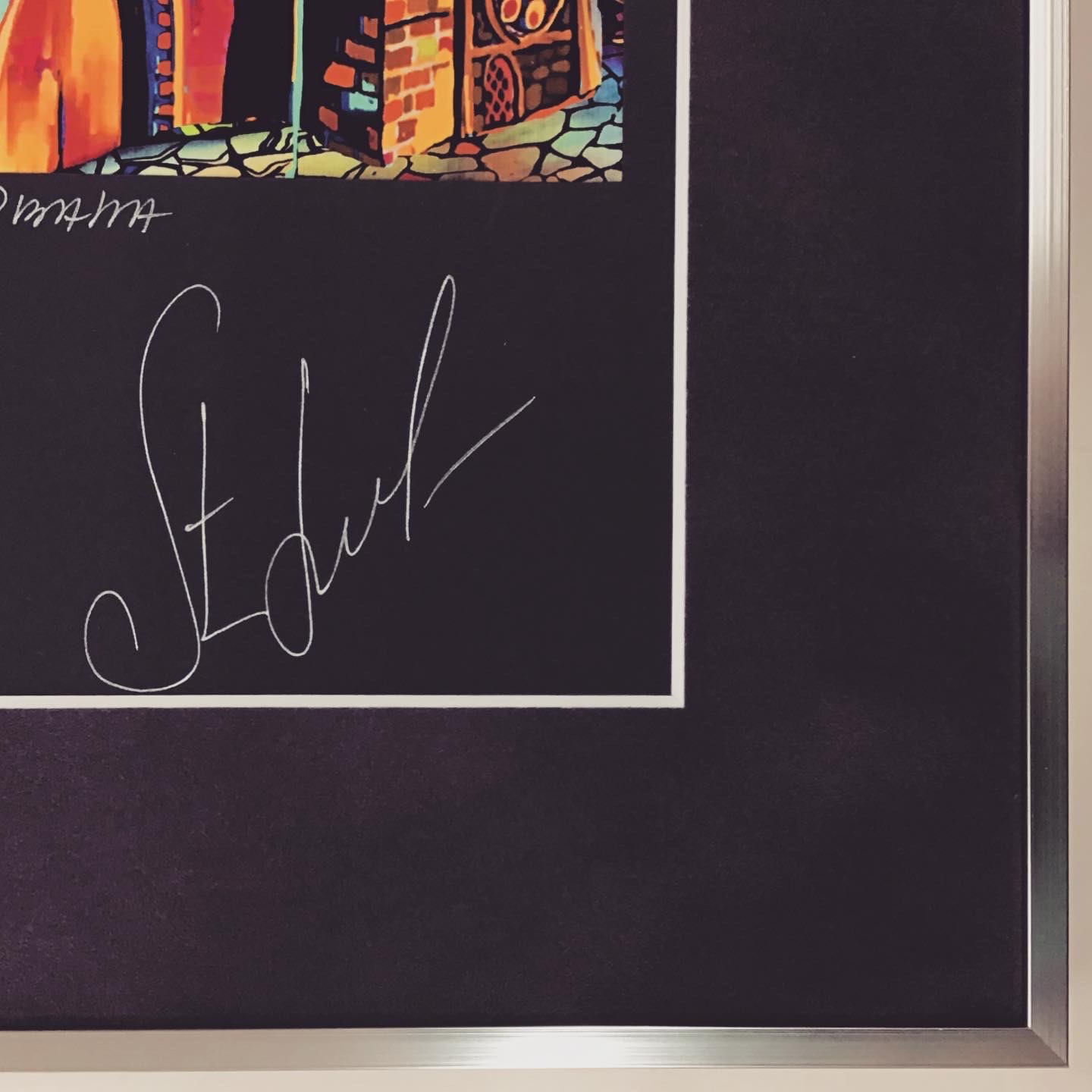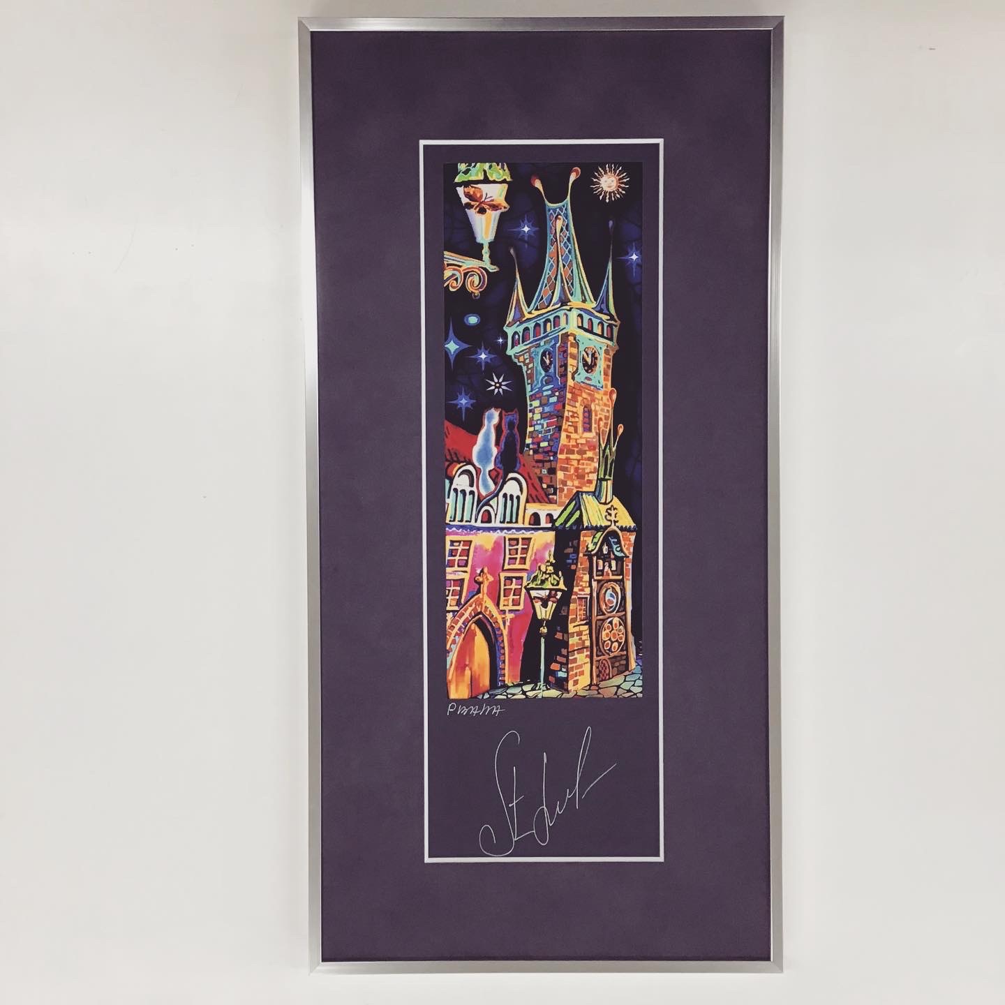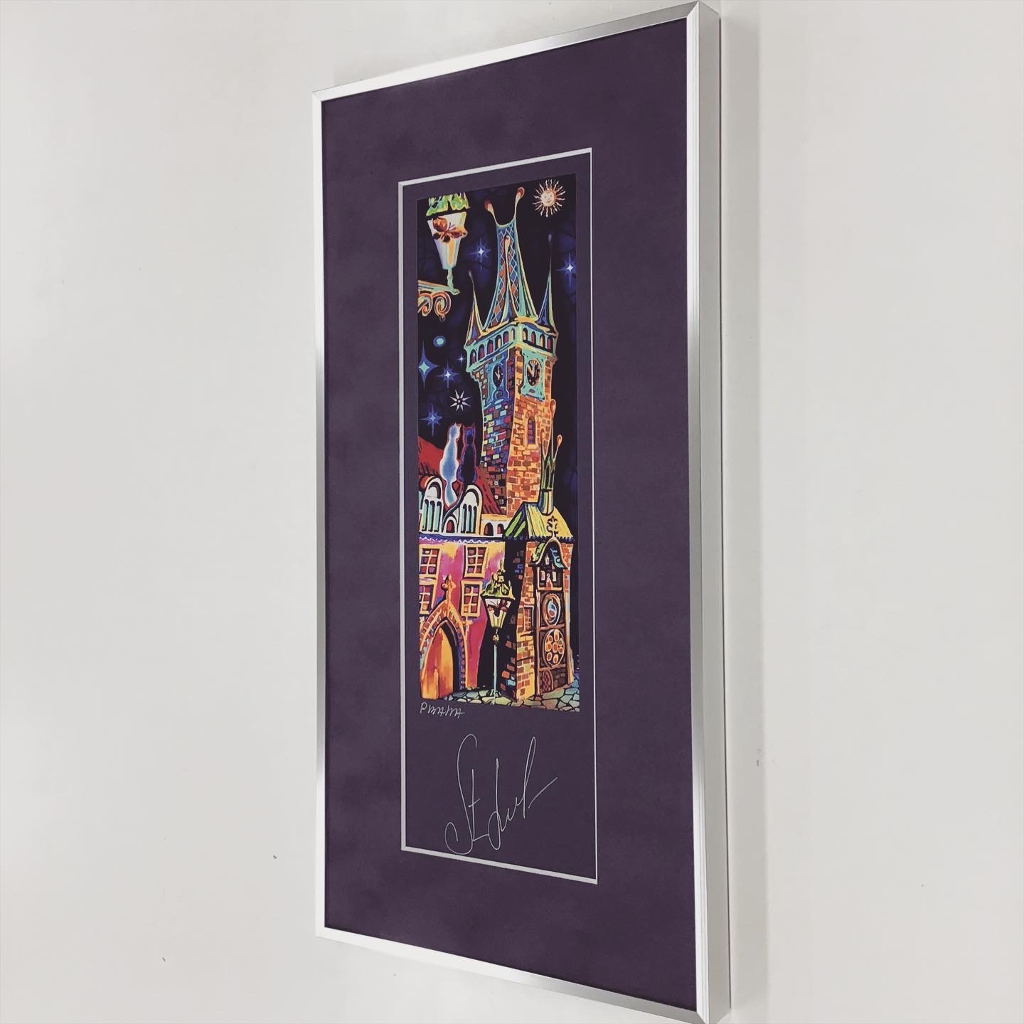 海外で購入された絵を額装しました!数年前にご購入された絵...その当時、色んな国に行っていて、どこの国で購入されたものなのかは覚えてないそうです。 星が煌めいているので夜の街の絵でしょうか...?色鮮やかで明るく描かれています。きっとこの絵を描いた方の目には街がこのように見えていたのでしょうね! 使用したフレームは「T25 シルバー 250×500」、マットは暗めの紫色のスエードマット(24608)です。