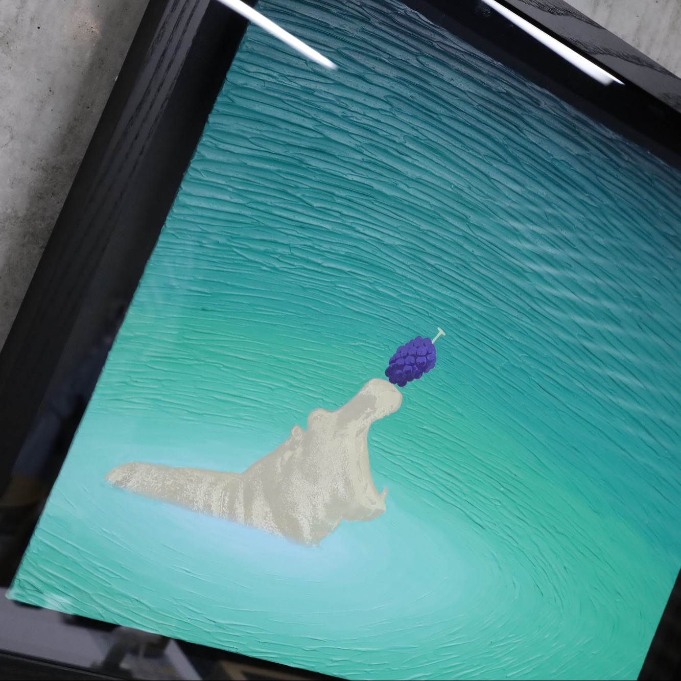 素敵な油絵作品に油絵額縁 角箱をお選びいただきありがとうございます。 描かれているのはカバと葡萄でしょうか… 凹凸とグラデーションのある綺麗な作品が、黒い背景から浮き上がって見えてとても不思議な雰囲気ですね😊