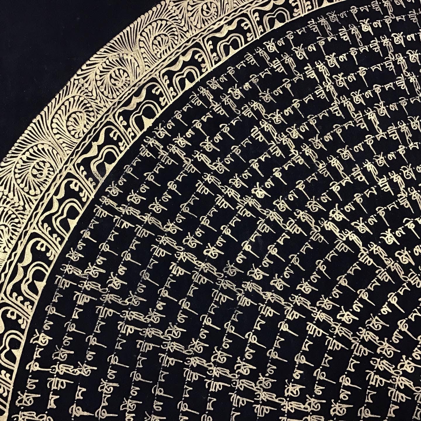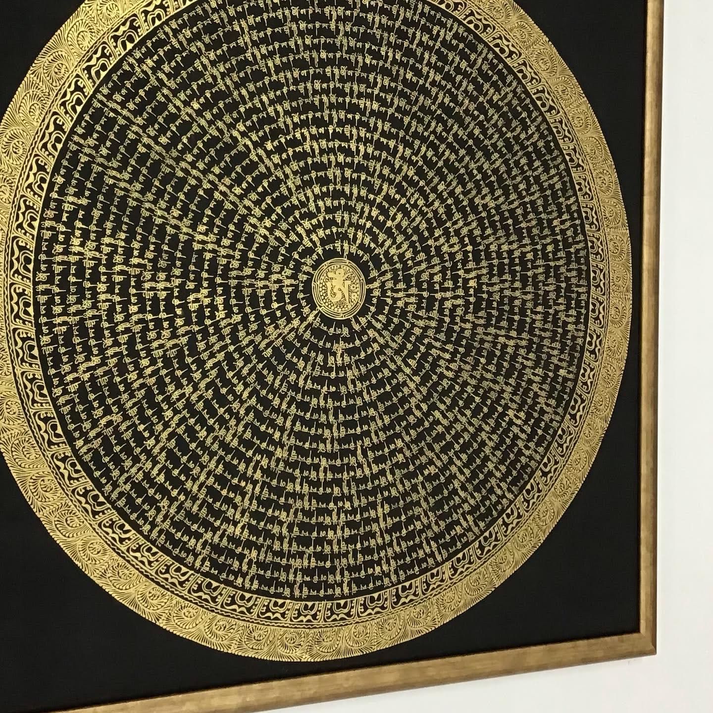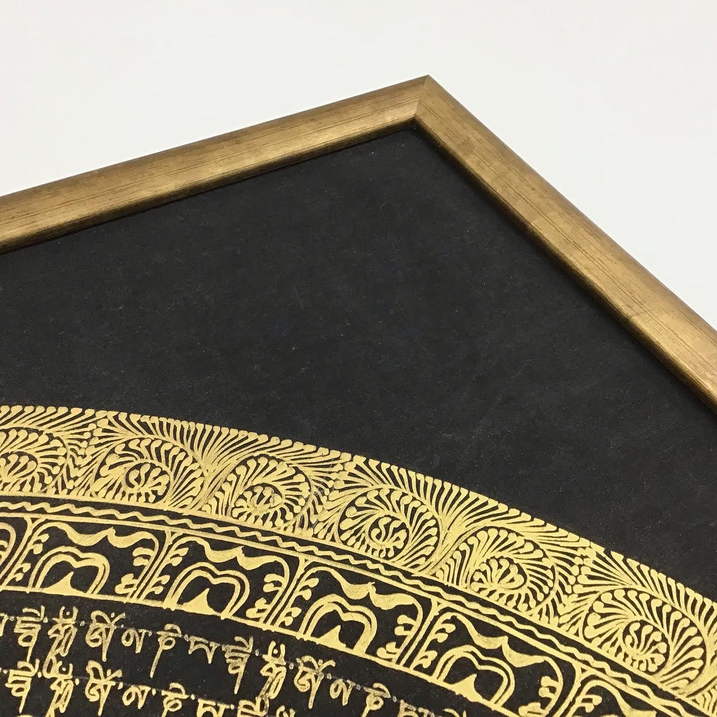 金文字のみで細かくびっしりと記された、大きな曼荼羅を額装いたしました! お客様がお持ちになったのは2点。1点は70cm真角程、もう1点は1m真角にもなる作品でした。こちらに掲載させて頂いたものは前者の方です。 フレームは大型の水彩作品なども額装可能なアルミ額SG-706のWG色で、丁度良い余白で円が出るように特寸サイズでお作り致しました。 色合わせも額が勝ちすぎることなく、お選びいただいた渋いゴールドがよく合っています。 モダンなインテリアとしても楽しめる、シンプルなツートーン風の額装になりました。 #SG706 #SG-706 #曼荼羅 #フォント #金文字 #マンダラ #金縁 #シンプル #モダン #真四角