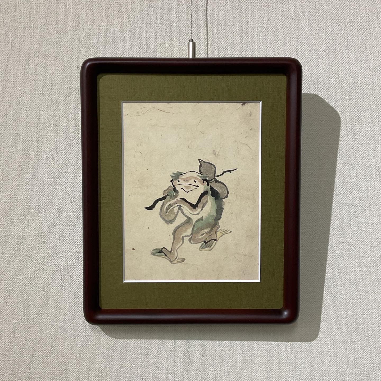 『湿式裏打ち 額装』 年代物のお品物を裏打ちするときは、機械で行う乾式裏打ちより手作業の湿式裏打ちをお勧めします。 湿式裏打ちをすれば、また別の形に仕立て直しができたり汚れを落とす洗濯やシミ抜きなどもできます。 お品物にあった裏打ちをご提案いたします。 *使用フレーム D717 セピア /インチ *使用マット 19005 ワサビ 河童さんも生き生きとしたように見えます☺️ 受け継がれていく河童さんをキレイキレイさせていただきました✨ ありがとうございました。