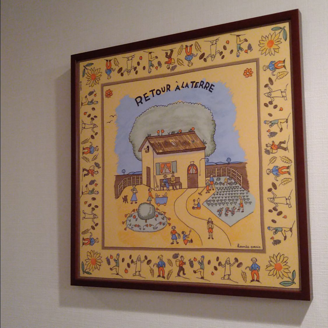 HERMES かわいい絵柄なのであたたかい雰囲気の木目の額縁にてお願いしました。