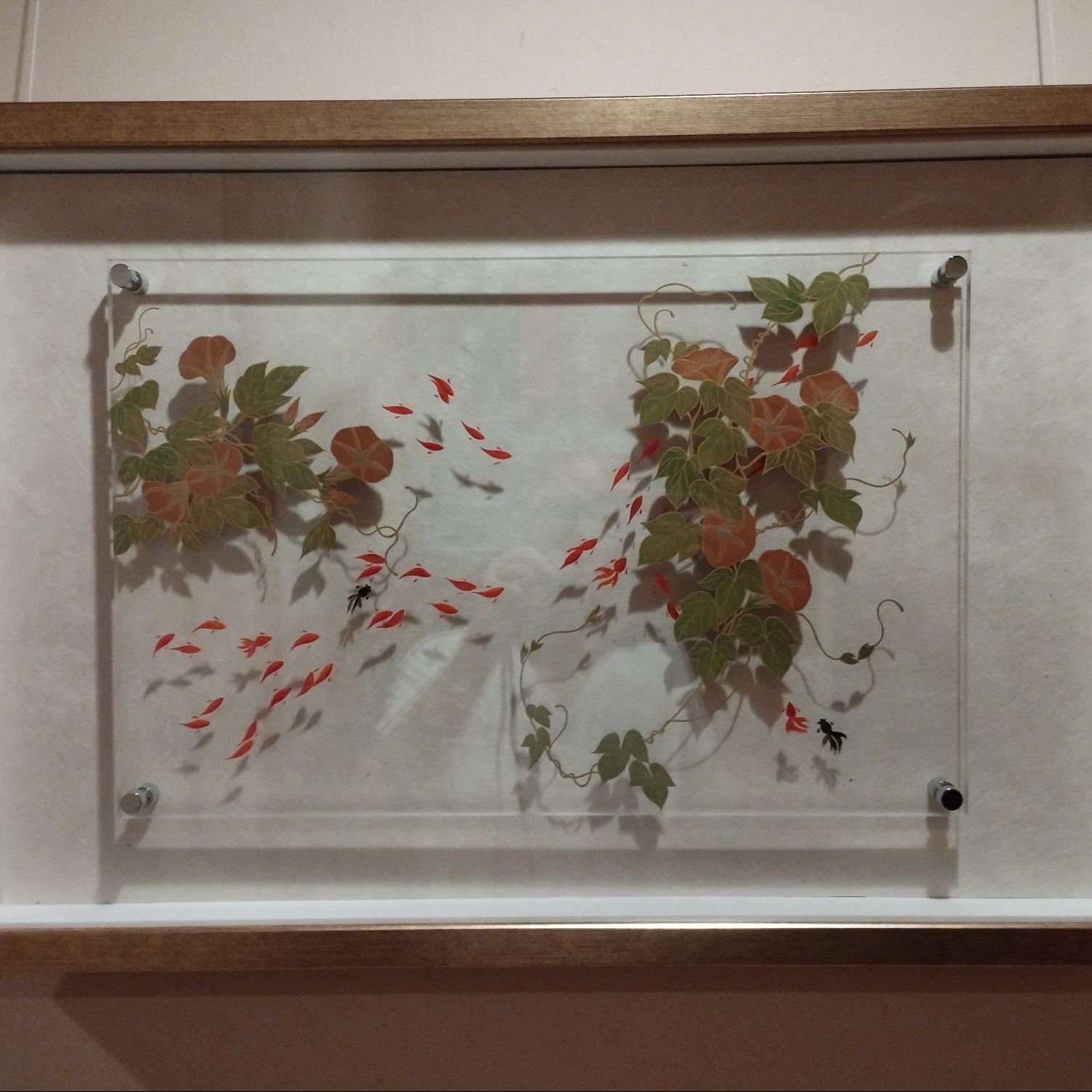 泳ぐ金魚の蒔絵 40✕60✕5(cm) 漆工芸作家の作品をタカハシ額縁に収めて見ました。