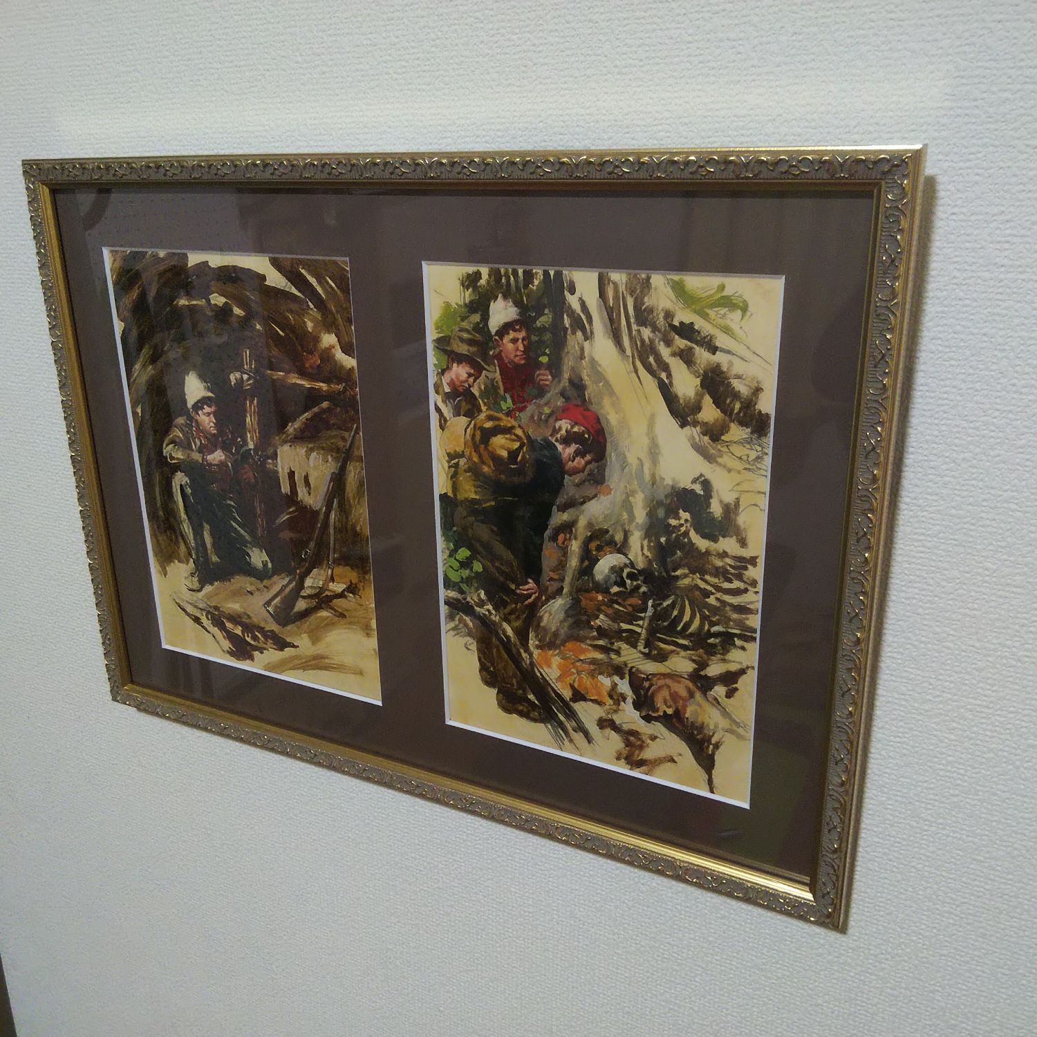 佐藤照雄「十五少年漂流記」挿絵原画 【額】プティ/ゴールド 【マット】朽葉 に複数窓抜きして頂きました。 ん~、ちょっと色味を合わせすぎましたか?