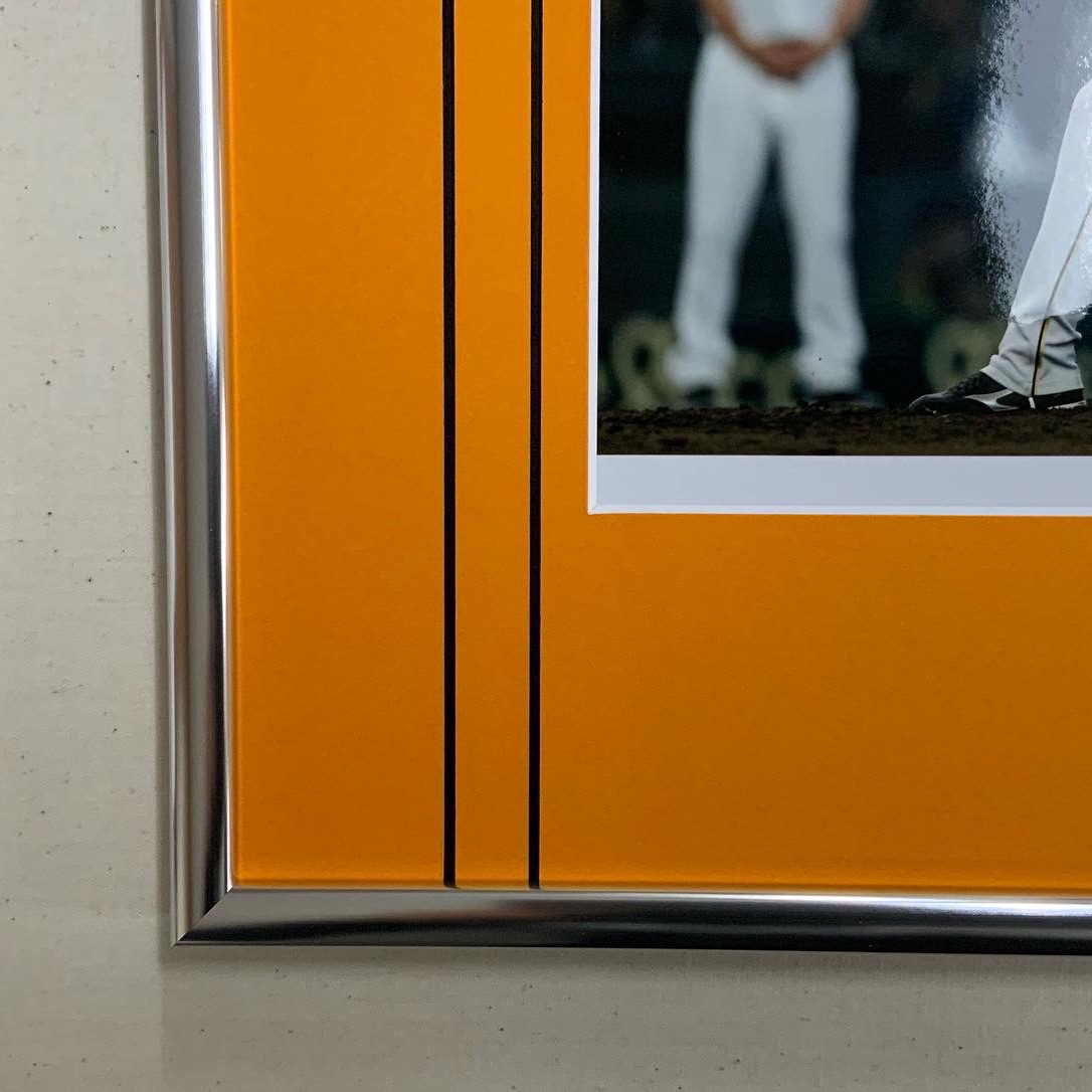 阪神ファンのお客様から、貴重なお品物をお預かりしました。大ファンだという湯浅京己選手のサイン入り色紙と、記念写真の写真を額装しました。 ただ、色紙と写真を収めるのではなくて、誰が見ても「阪神タイガース」ということが分かる額装にしました。 マットの色はもちろん黄色。写真の横にはユニフォームの縦縞をイメージして、黒いラインが出るようにマットを仕上げました。 #額縁のタカハシ川中島 #額縁のタカハシ #阪神タイガース #阪神 #阪神ファン #野球 #野球観戦 #baseball #額装 #額縁 #額映え #額縁屋 #額縁店 #額 #額装 #frame #framing
