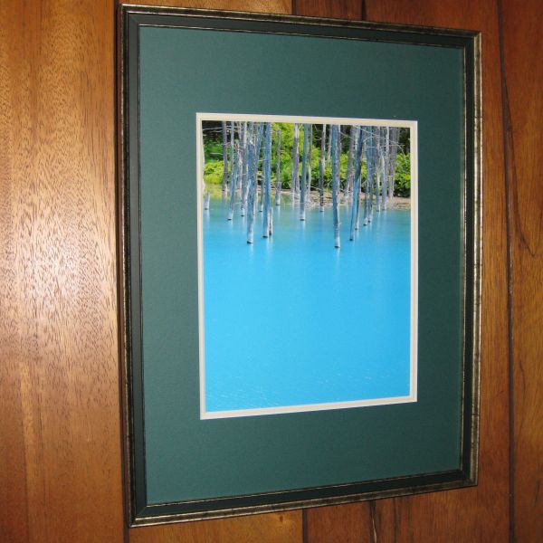 美瑛にある青い池の写真ですが額縁を変えマットの色も変えてみました。 マットにより印象を変える楽しみ方で、写真を撮る楽しみも増えました。