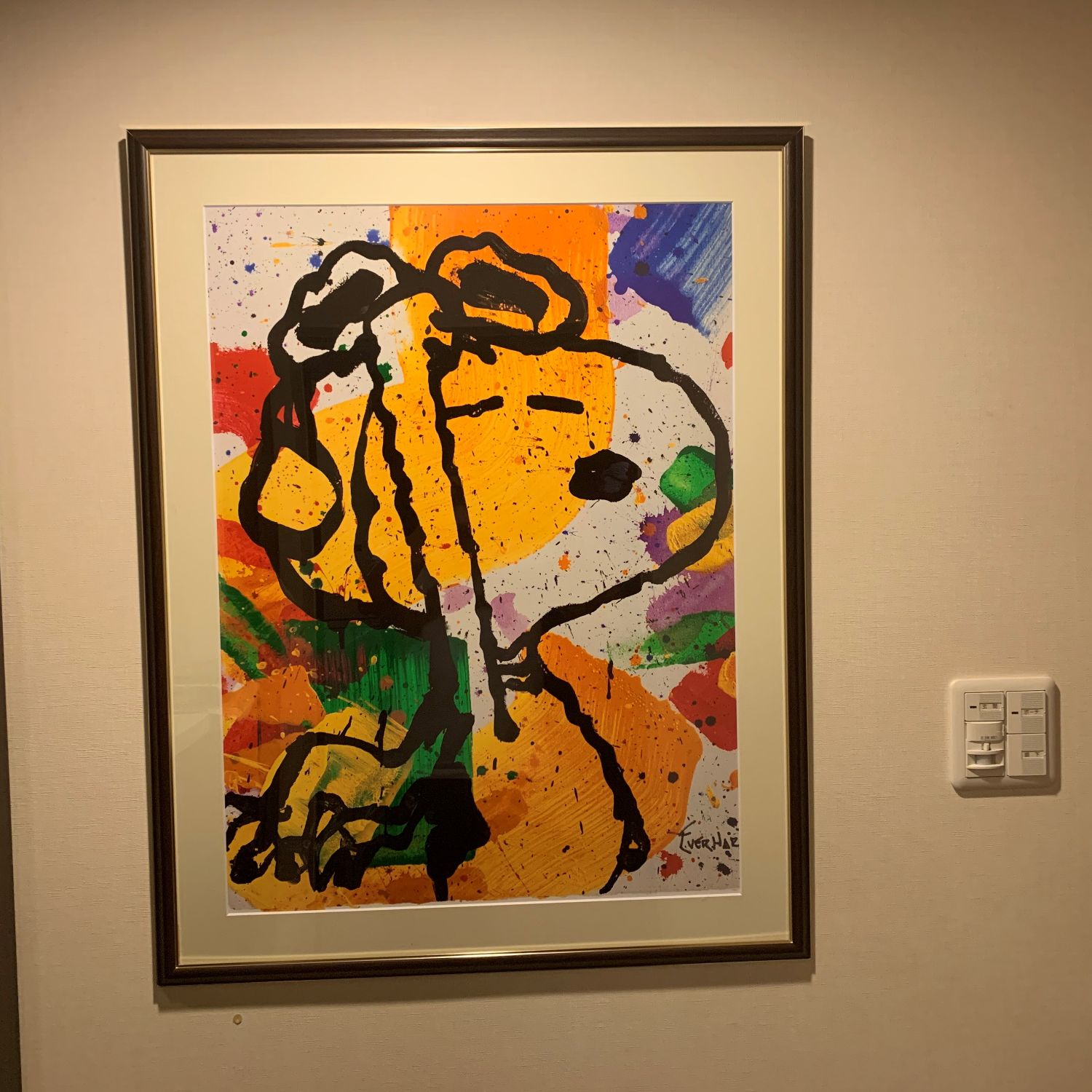 スヌーピーはシンプルに描かれながらも、散りばめられたさまざまな色がそのシンプルさを個性的に引き出していますね!フレームとマットの組み合わせも作品を邪魔せずに纏めてくれています✨