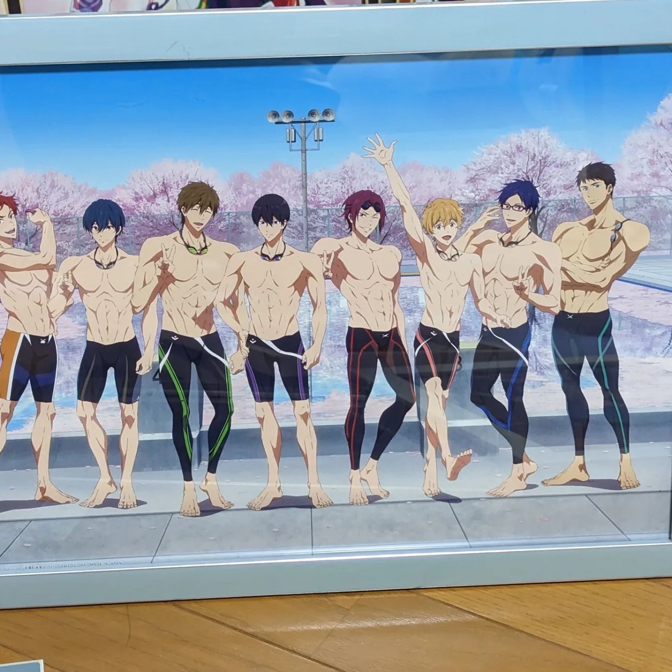 床に直おきですが、京アニのフリーです。額の色とイラストボードの相性が良く気に入っています。