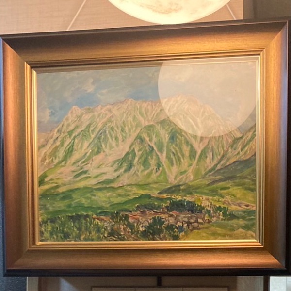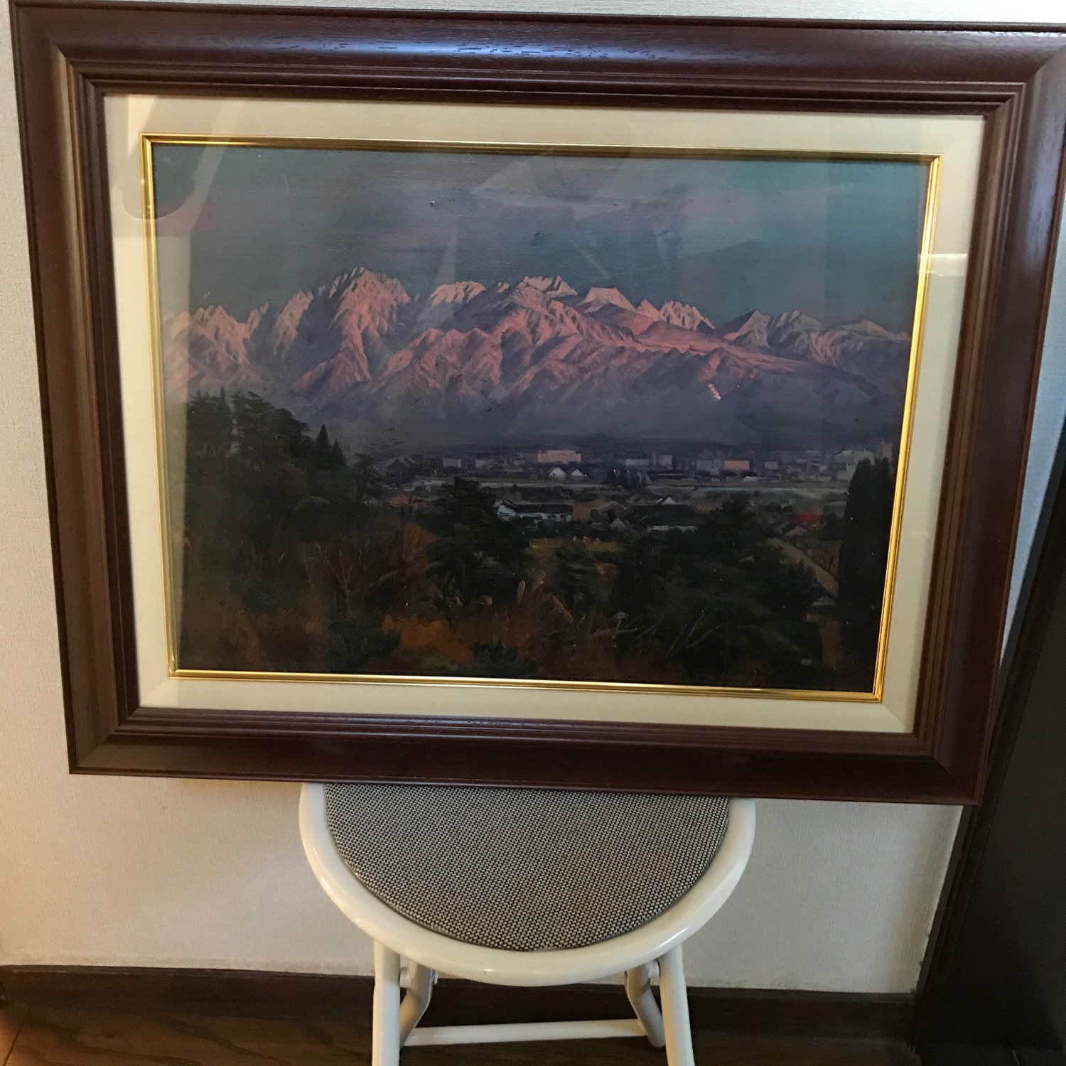 夕映えの立山連峰と立山(雄山)です。プレゼント用に購入しました。色合いもピッタリで喜んで頂きました。