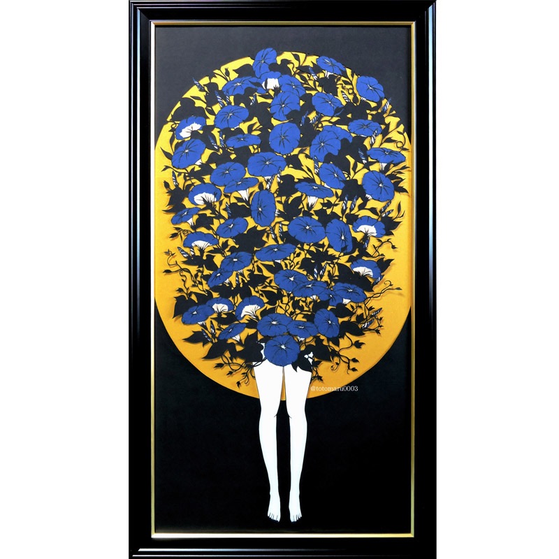 こちらも切り絵作品なんですね😳とても繊細な植物の線が美しく、ほっそりと浮かぶ白い足からも不思議な世界に迷い込んだような魅力を感じます🥰黒×金のフレームが本当に作品にぴったりです✨