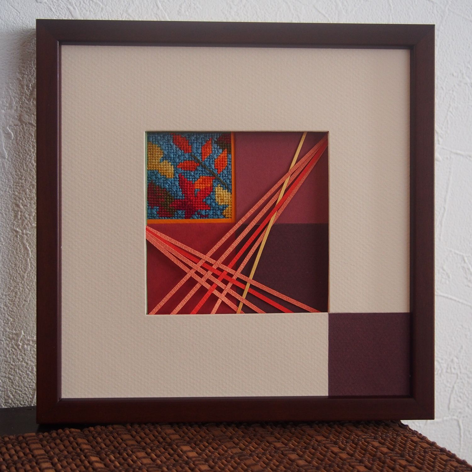 フランス額装のアイデアを使って キャンバス刺繍の紅葉の作品です