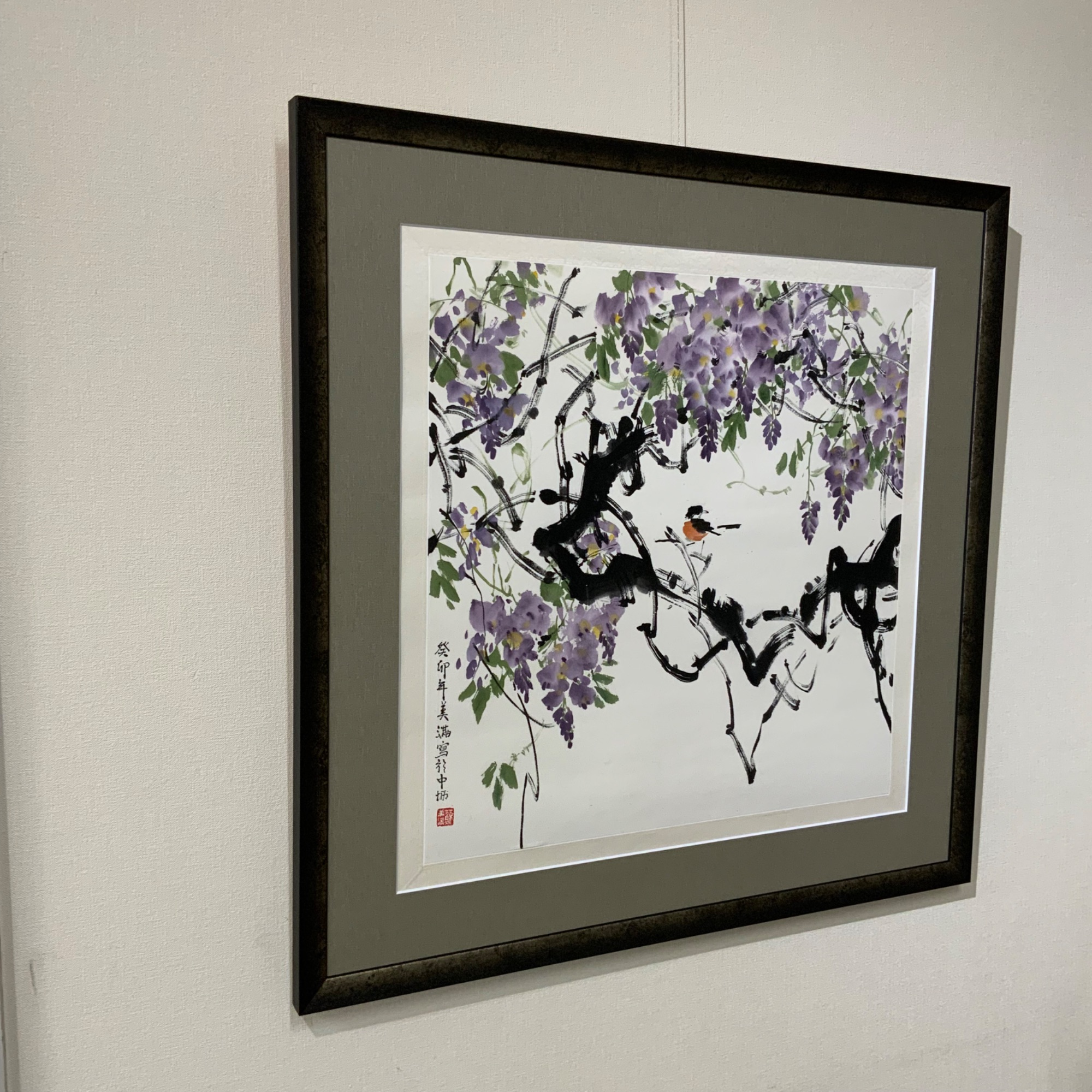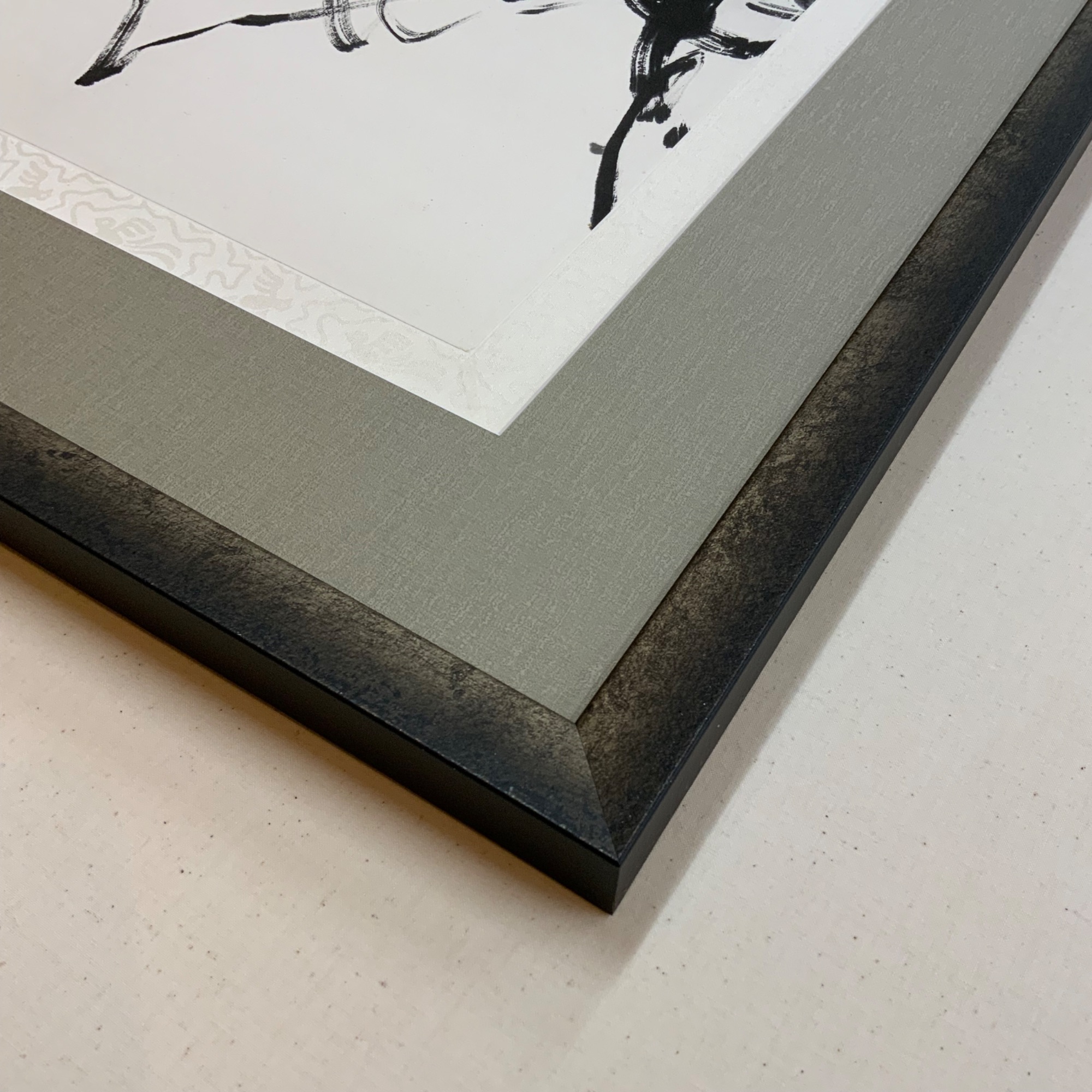 躍動感のある筆遣いで描かれた墨彩画。 綺麗な白の緞子柄の布が張り込んである状態でお持ち込みいただきました。 改めてマットを作ることもできますが、せっかくの緞子柄を隠すのはもったいないので、20ミリずつ緞子部分を残しようにして、マットを入れました。 使用したフレームは【12-6092】、マットは10504(ただ今品切れ中🙇♂️)。 作品はお知り合いの方からのプレゼントだそうで、綺麗に額装した作品を早速ご自宅に飾るそうです。 #額縁のタカハシ川中島 #額縁のタカハシ #墨絵 #墨彩画 #墨 #水墨画 #墨絵アート #額装 #額縁 #額映え #額縁屋 #額縁店 #額 #額装 #frame #framing