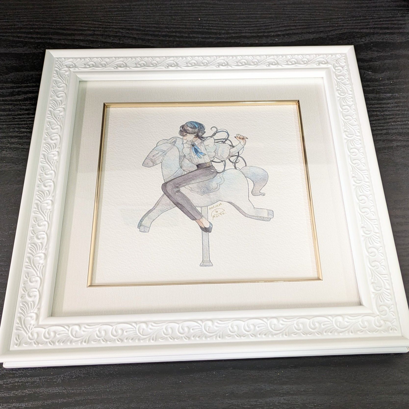 いつもご利用いただきありがとうございます。 白色で統一したフレーム・マットに、面金の艶のある金色が映えますね!作品の淡い色使いとも相まって、全体に優しい雰囲気を感じます。また作品を額装の際はぜひご相談いただければ幸いです。