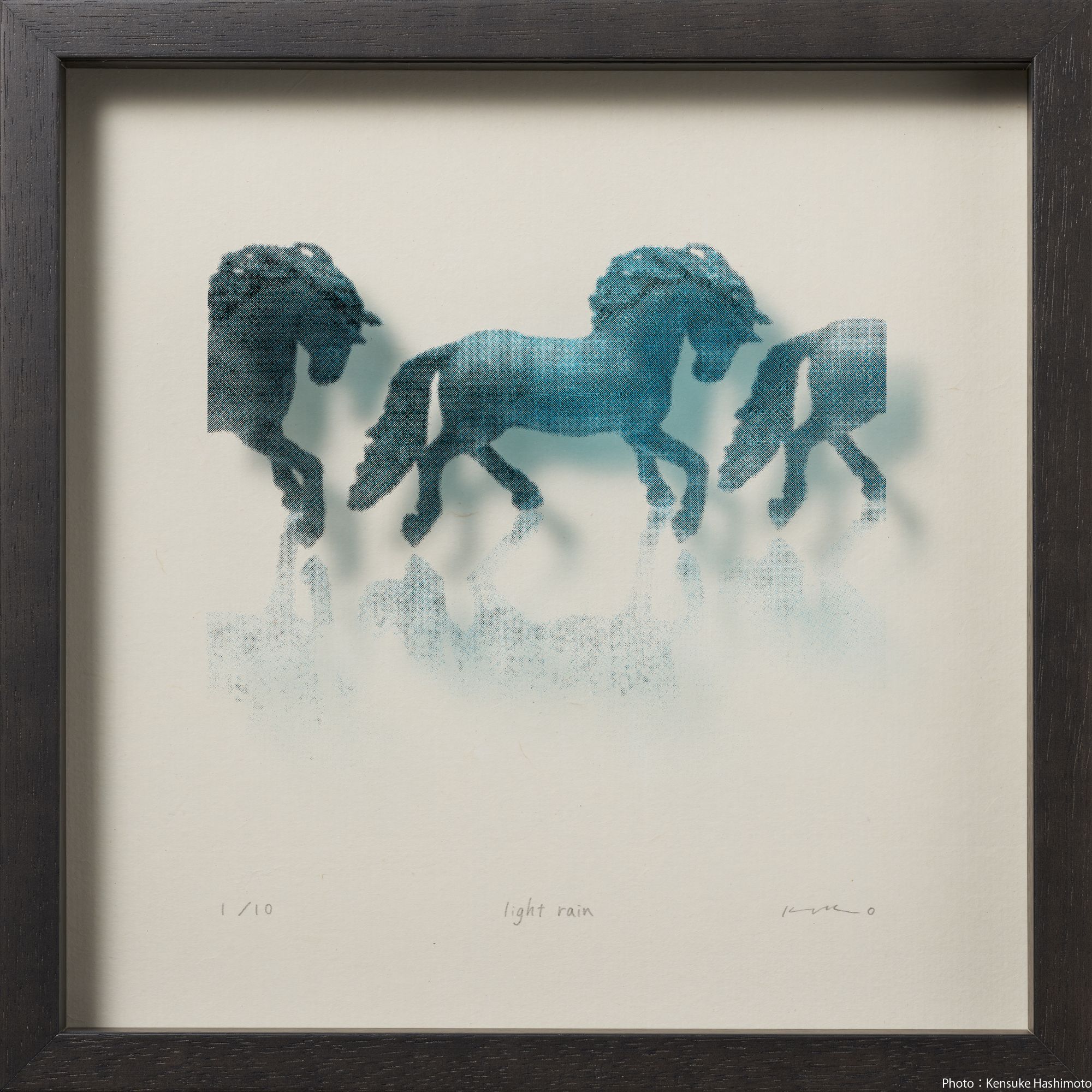 《light rain》 アクリル板にシルクスクリーン、吉野手漉き和紙 image size 200×200mm ed.10 和紙に影を投影するため、奥行きを持たせた状態で額装しています。