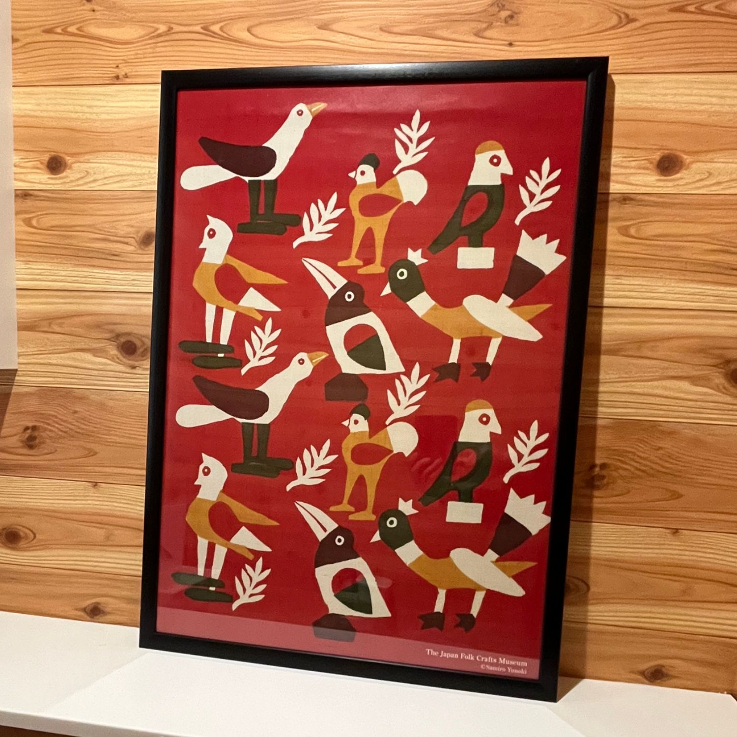 「柚木沙弥郎 喜び鳥 」 ステインパネル ブラック 民藝のポスターによく合いました。