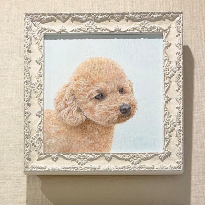 油彩S0サイズで愛犬の似顔絵を描きました。S0サイズは既製品が少ないのでオーダーできるのがありがたいです。