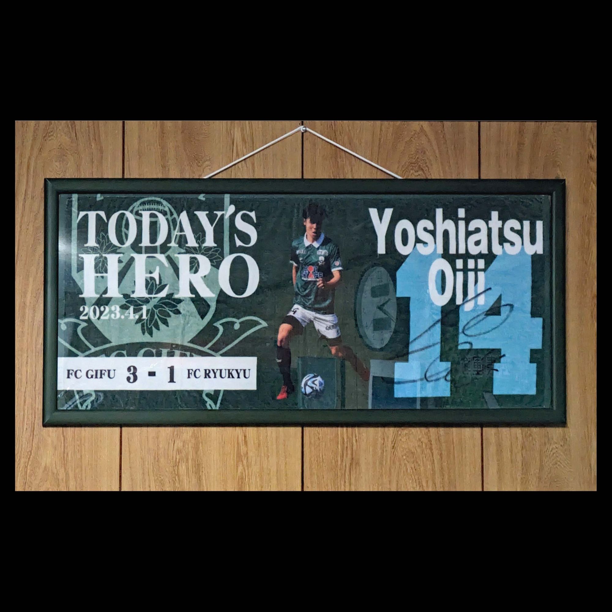 FC岐阜 Today's HEROフェイスタオル【生地 慶充選手】に直筆サインが入ったの機に額装 2023.4.1 FC琉球戦 2点目を決めた生地選手の当日の写真が入ったToday’s HEROグッズです。 #タオル・毛布 #スポーツグッズ