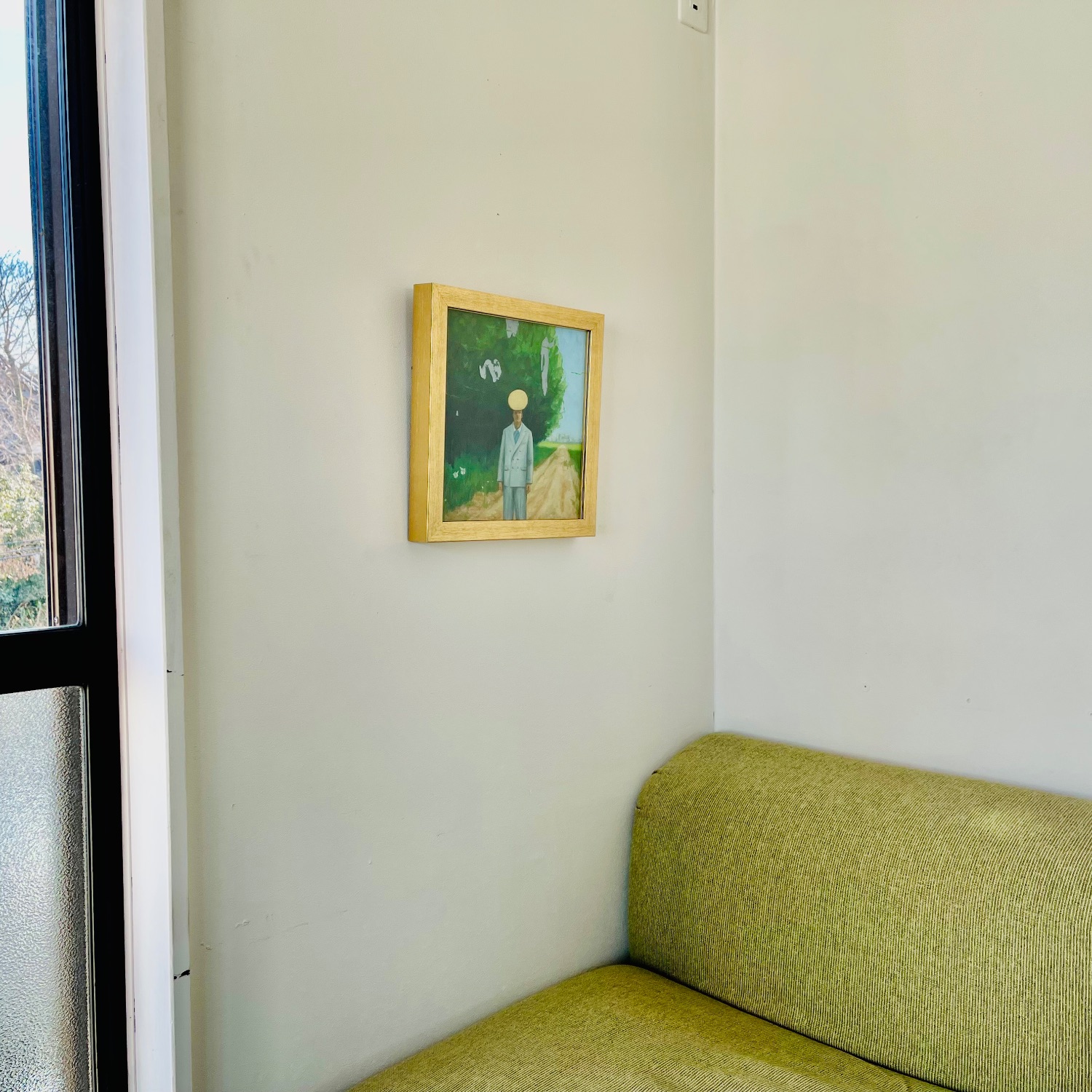 絵の中の金色と額縁の金色が合っていていい雰囲気です ソファ脇に飾りました